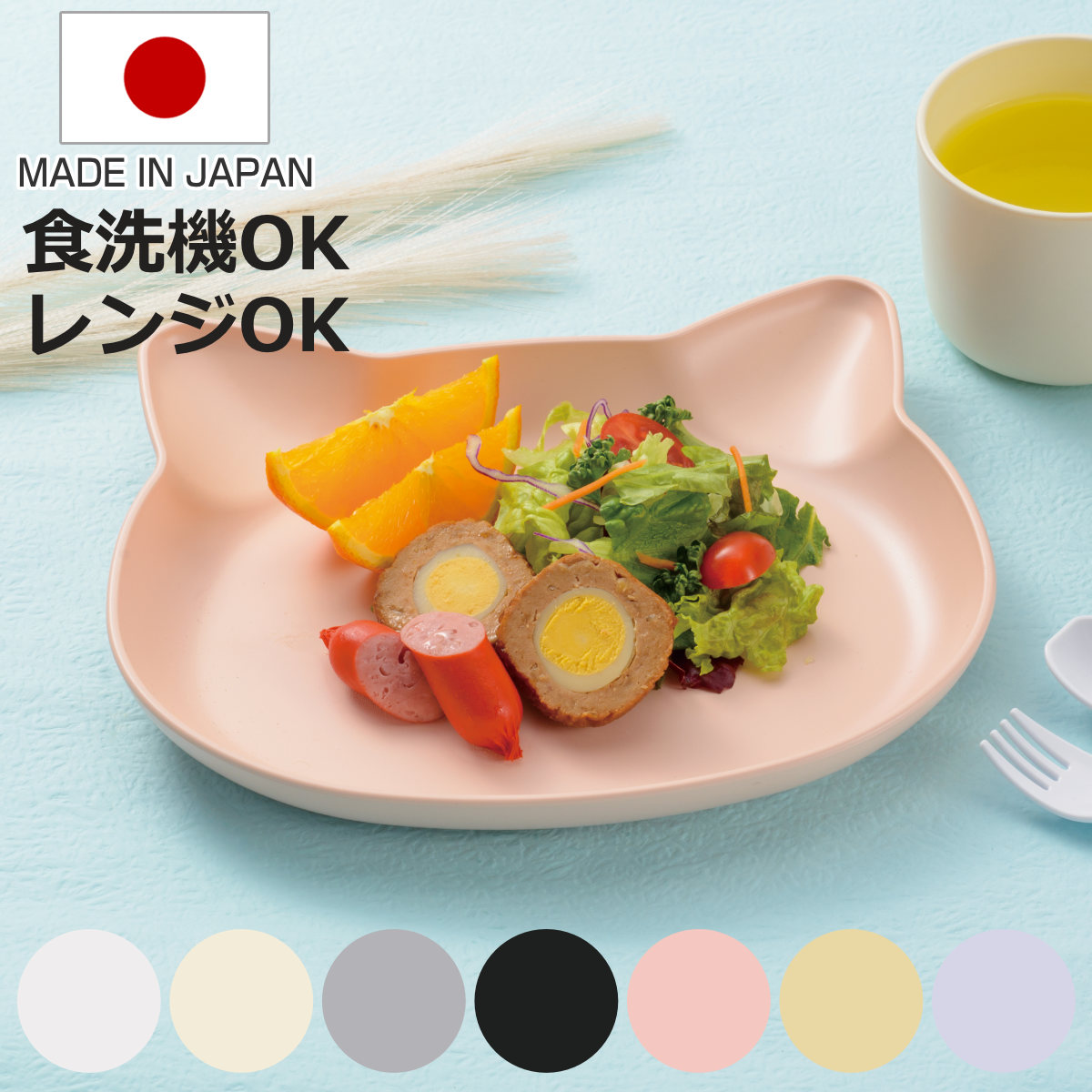 親子で楽しめる猫のお顔ランチプレート猫のお顔デザインがかわいい子ども用食器です。大人の食器と一緒に食卓に並べてもやさしく馴染むパステルカラーも魅力です。抗菌加工により、衛生的にお使いいただけます。