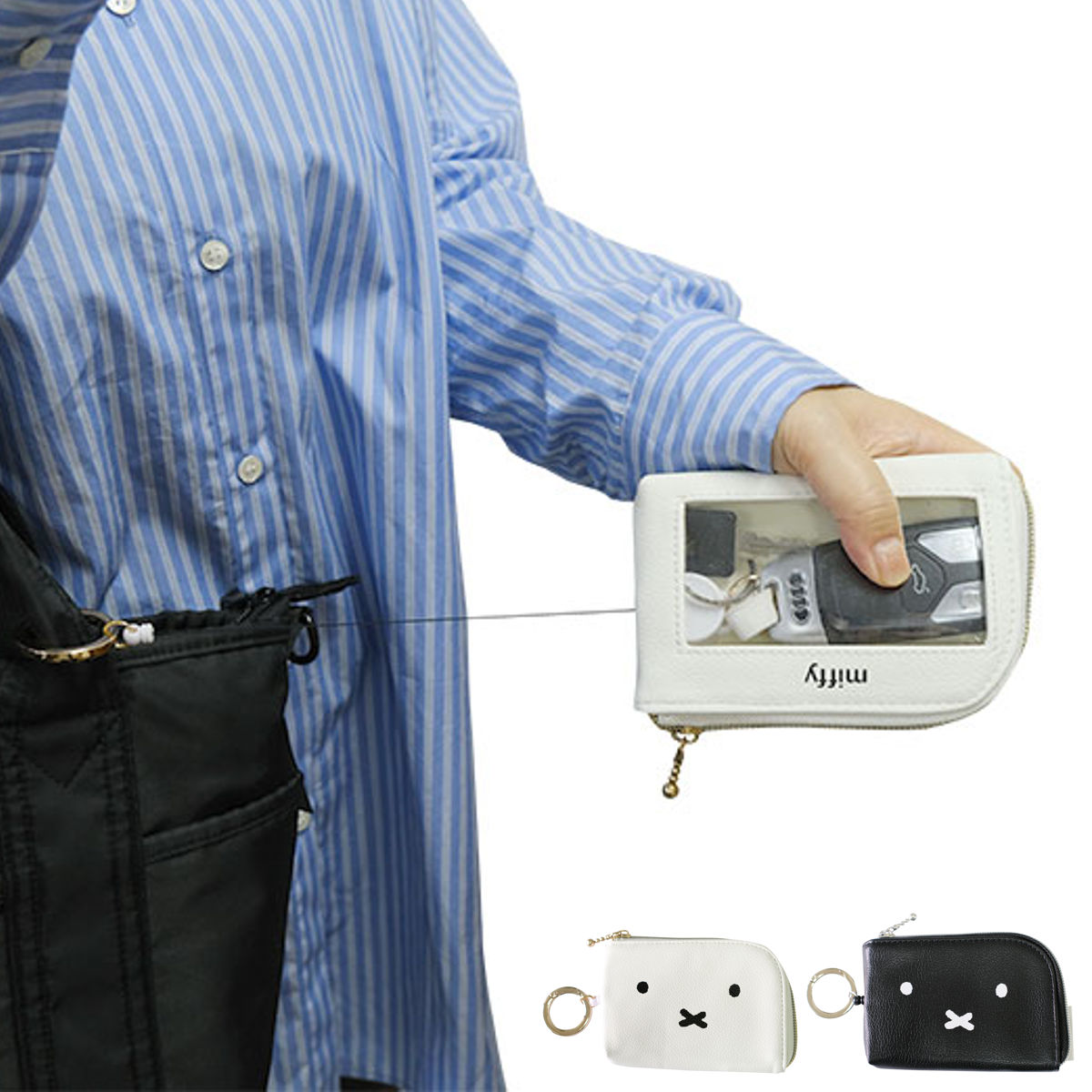キーケース ミッフィー リール付き スマート キーポーチ 定期入れ ( miffy キャラクター キーカバー キーリング ポーチ クリア窓付き ボタン操作可能 )