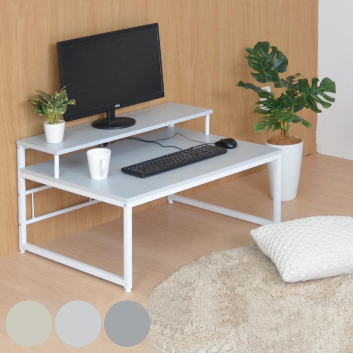 ワークデスク ロータイプ 高さ45cm パソコンデスク Noko ( デスク 机 ローデスク パソコン 奥行65 広い モニター台 デスクワーク 棚 台 2段 テーブル )