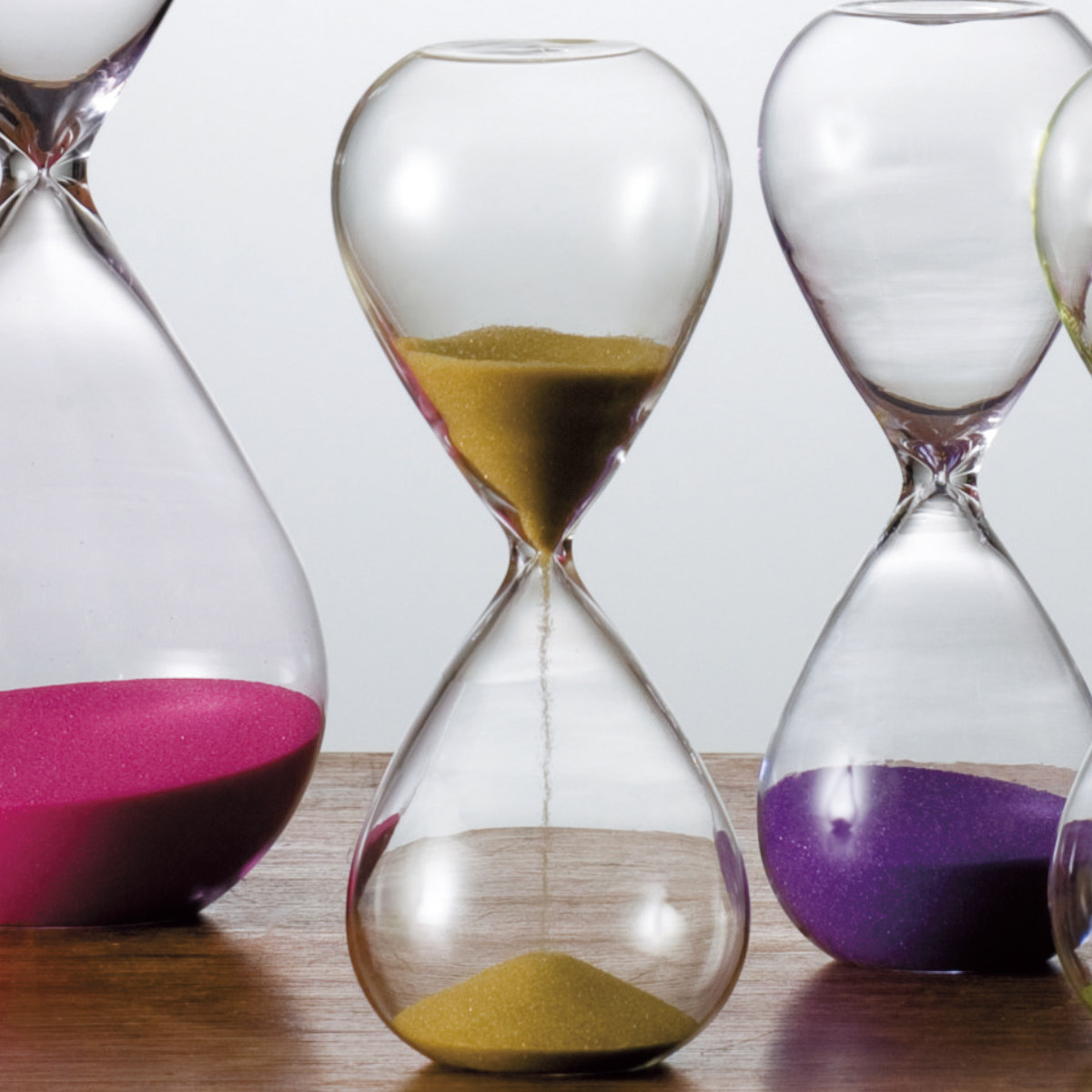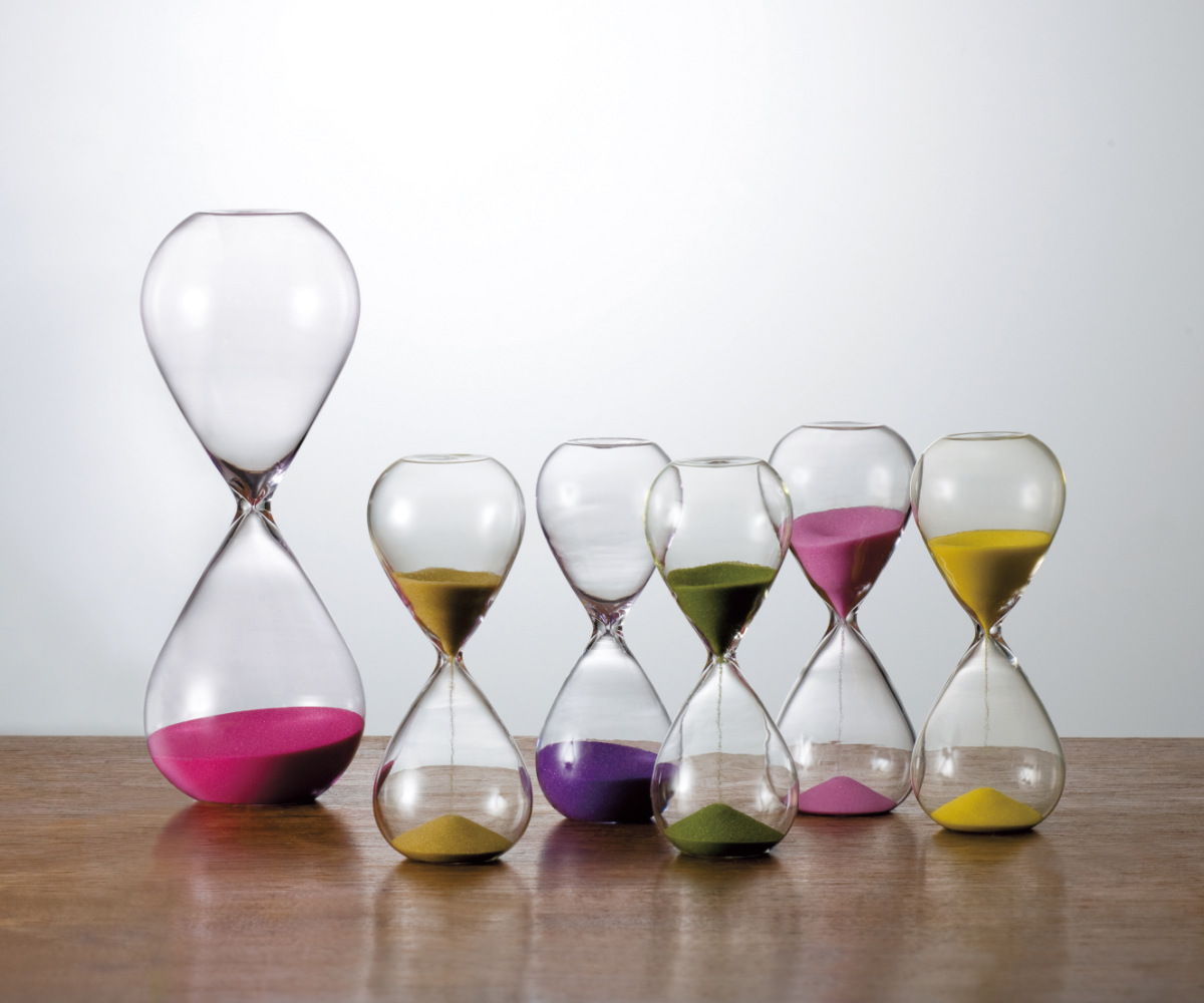 ゆったりした時間のお供に ガラスの美しさが際立つ砂時計●継ぎ目も柱もない、シンプルを極めたガラス製の砂時計です。