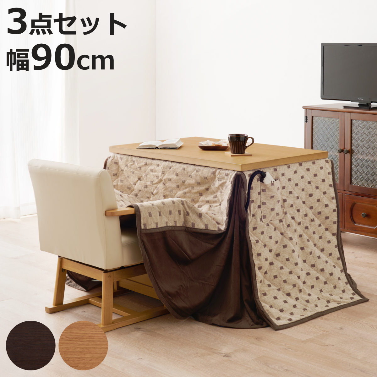 まとめて揃えられる3点セット テーブルサイズ 90cm×60cm