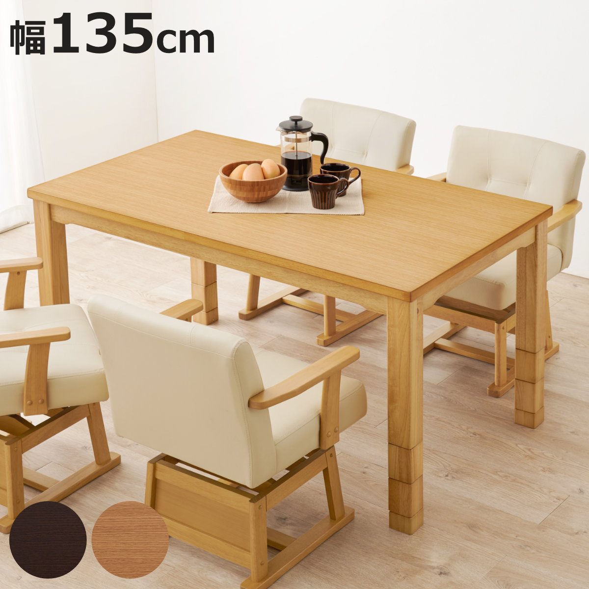![]() ダイニングこたつ 継脚 幅135cm 【▲このページの商品】 | ![]() ダイニングこたつセット 6点セット マロン 幅135cm | ![]() ダイニングこたつセット 6点セット トルタ 幅135cm |