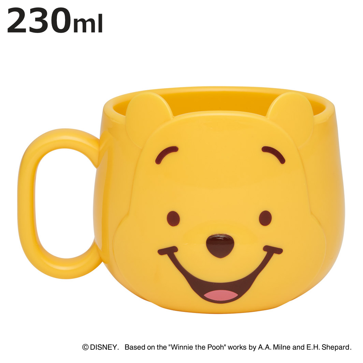くまのプーさんのマグカップ 230mlプーさんの立体的な顔が可愛いマグカップです。プラスチック製なので落としても割れにくく、小さなお子様でも安心してお使いいただけます。一回のお食事にちょうどいい容量230mlです。お名前シール付きなので、通園用としても最適です。