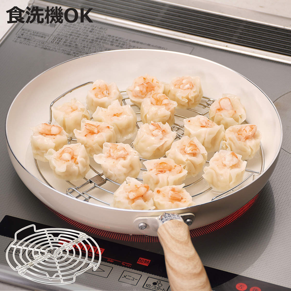 フライパンにのせるだけで蒸し器に早変わり●フライパンに乗せるだけで手軽に蒸し料理が作れるフライパンスチーマーです。
