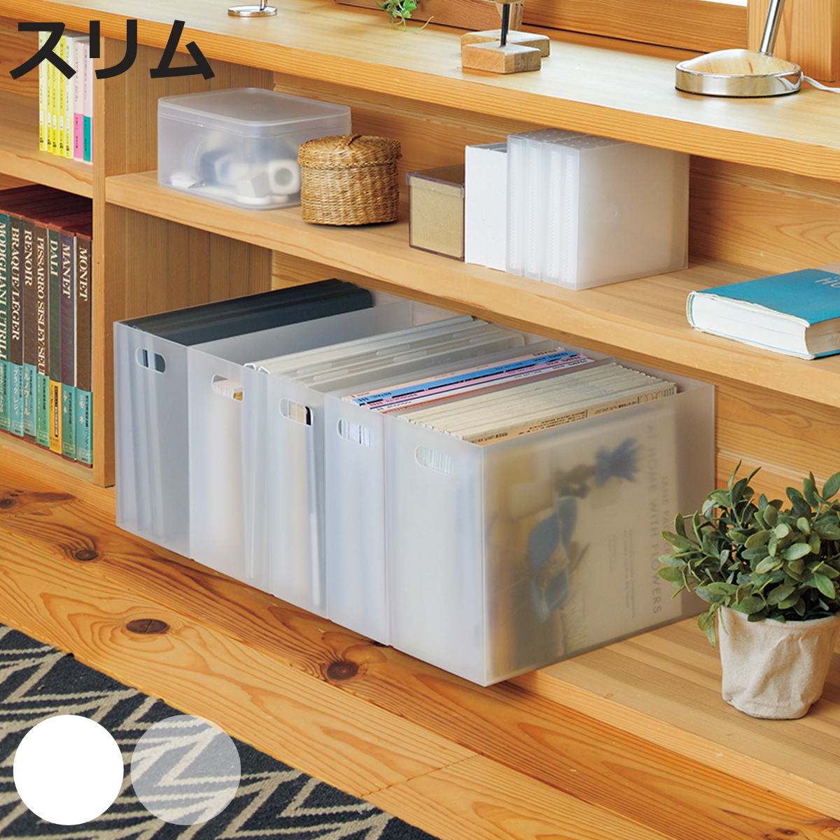 A4サイズの書類やファイルをスマートに収納できる、スリムタイプのストレーショナリーボックスです。幅わずか10cmのスリム設計で、限られたスペースでもしっかり収納できるから、デスク周りや棚のすき間にもぴったりです。