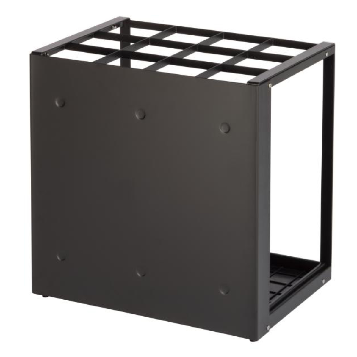耐久性とデザイン性を兼ね備えた傘立て耐久力のあるスチール製の傘立てです。正面に目隠しパネルがついているため、傘をスマートに収納し、スッキリした印象を与えます。シンプルなデザインなので、公共施設やオフィスなどの場所を選ばず配置ができます。