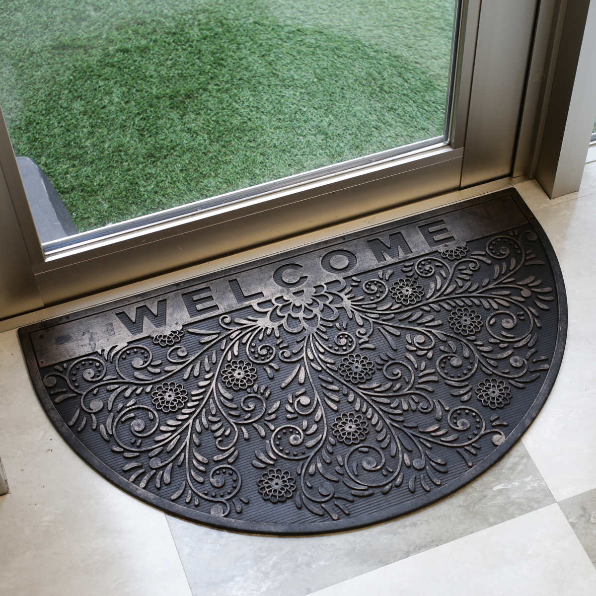 玄関先がやわらかい印象になる半円形半円形の玄関マットは、ドアを開けたときの前のスペースに自然と収まり、玄関先をやわらかい印象にしてくれます。置くだけで、オーソドックスな長方形のマットとは一味違う印象を与えてくれます。