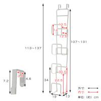 | サイズ | ドアフック使用時:幅19×奥行18×高さ113〜137(cm) ハンガー用フック通常使用時:幅19×奥行26×高さ66〜74(cm) ハンガー用フック壁面使用時:幅19×奥行13×高さ114〜138(cm) 壁面取付時:幅19×奥行13×高さ107〜131(cm) ハンガー1つあたり:幅19×奥行13×高さ34(cm) |