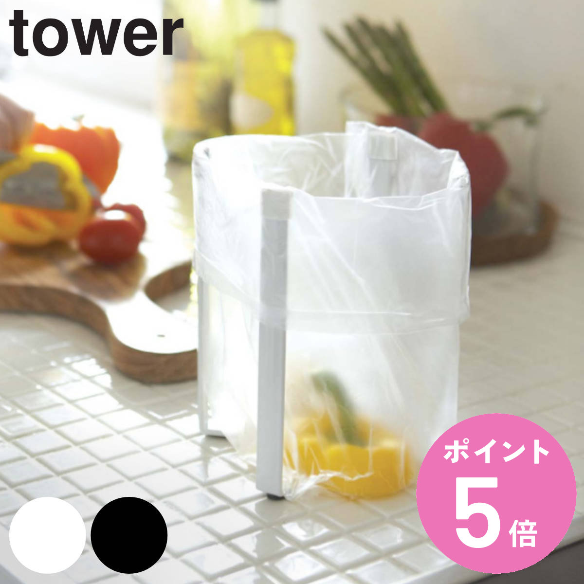 山崎実業 tower ポリ袋エコホルダー タワー ( 4903208067874 タワーシリーズ ポリ袋ホルダー ボトルスタンド コップスタンド グラススタンド キッチン収納 )