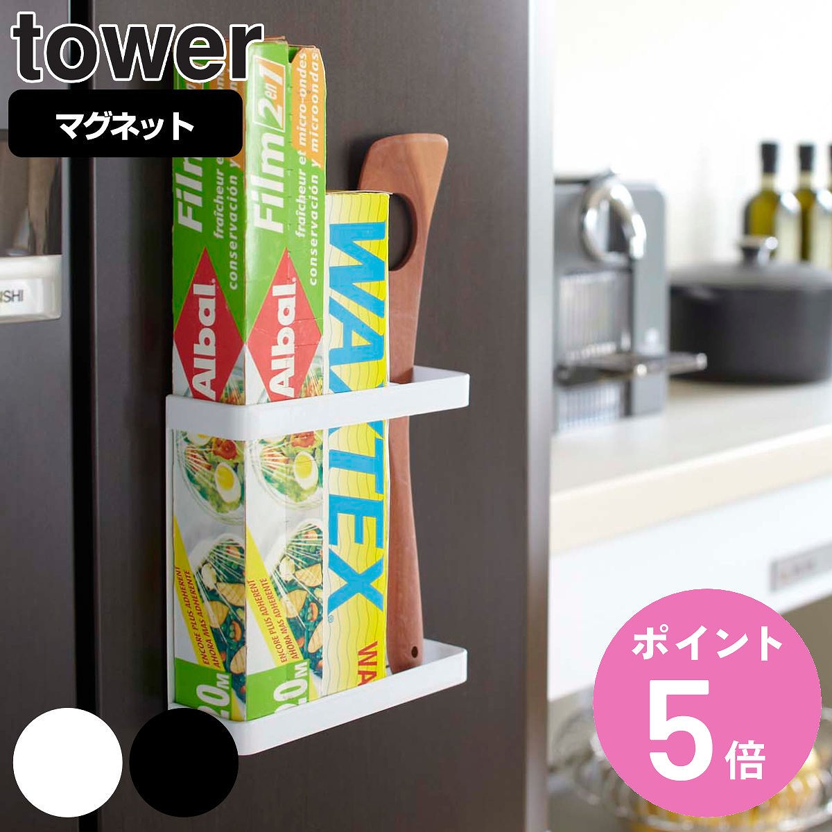 山崎実業 tower マグネットラップホルダー タワー ( 4903208071215 タワーシリーズ ラップホルダー マグネット 冷蔵庫収納 ラップ収納 ラップ立て )