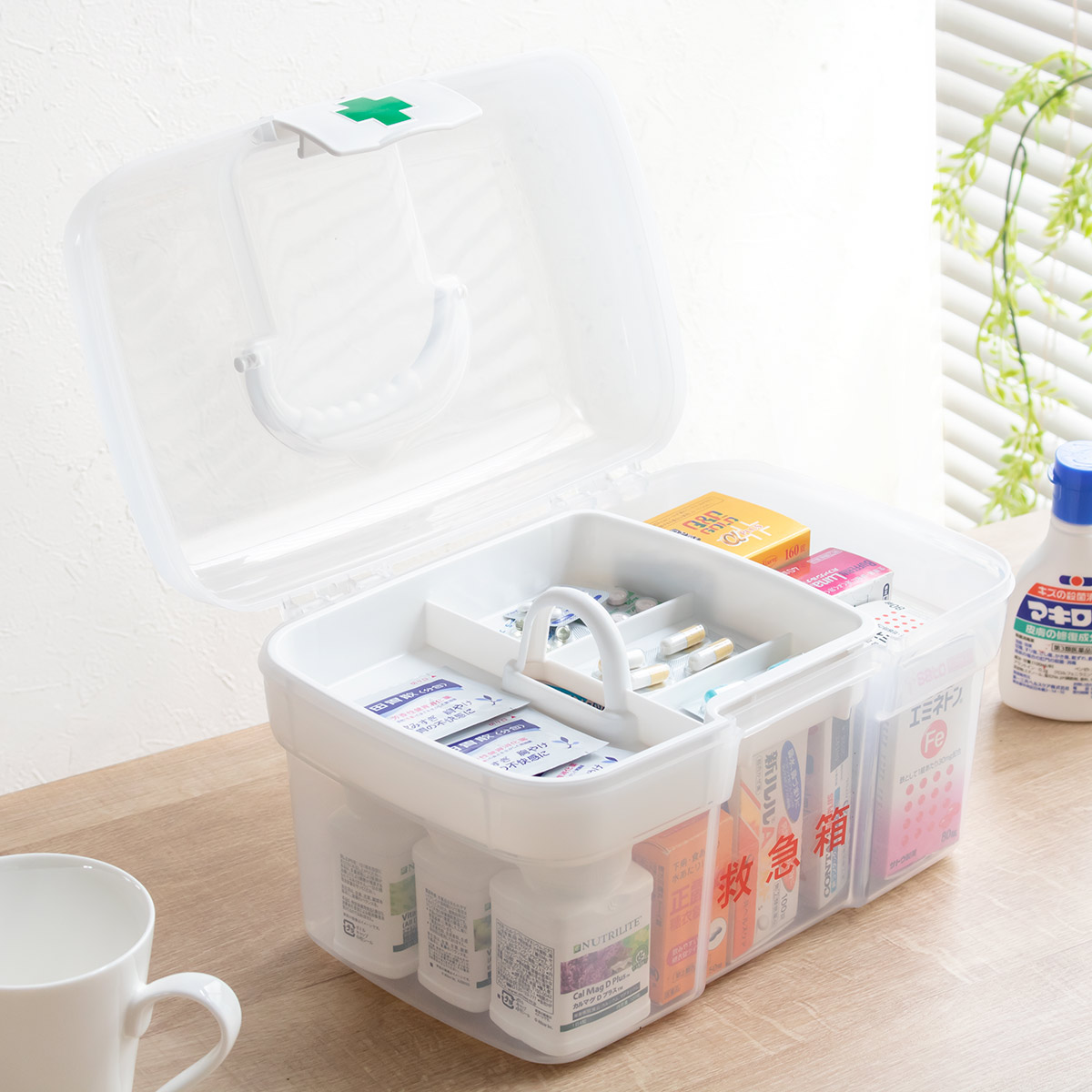 救急箱 キャリング救急箱 薬ケース 持ち手付き トレー付き 大容量 ( 日本製 薬箱 応急処置 応急手当用品 防災グッズ プラスチック製 )