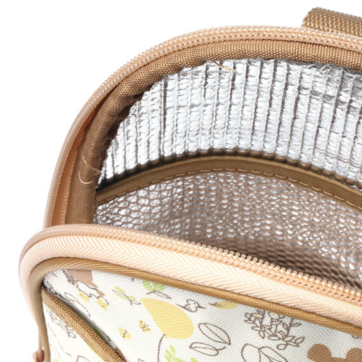 保温・保冷効果のあるアルミ生地内側は、保温・保冷効果のあるアルミ蒸着フィルム張りです。お出かけのお供として年中活躍します。