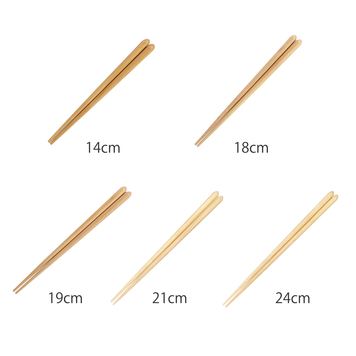 使う人に合わせて選べる天然木のお箸●14cm、18cm、19cm、21cm、24cmの豊富なサイズから選べる天然木のお箸です。