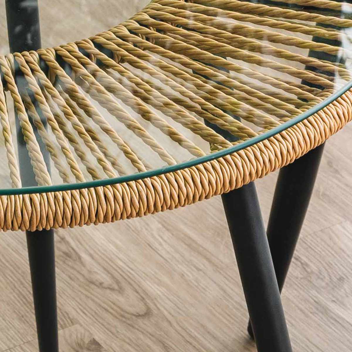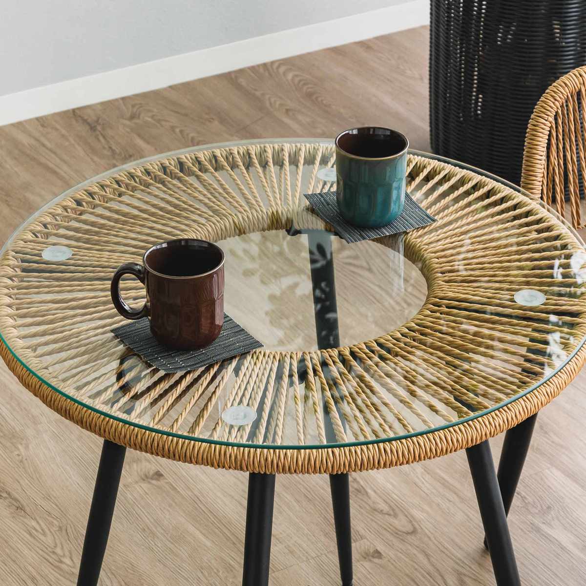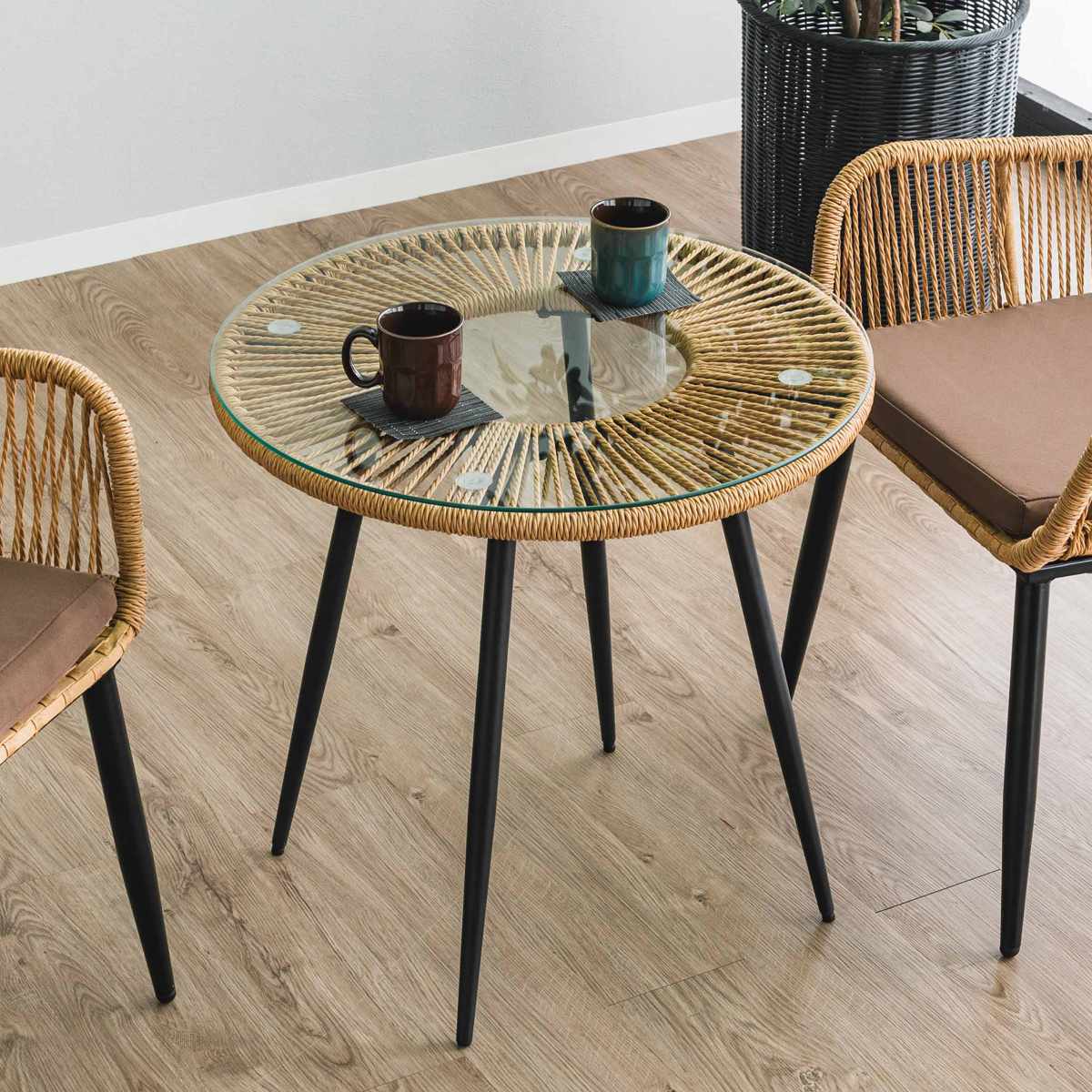 材質/籐(PEコード)、強化ガラス、スチール
