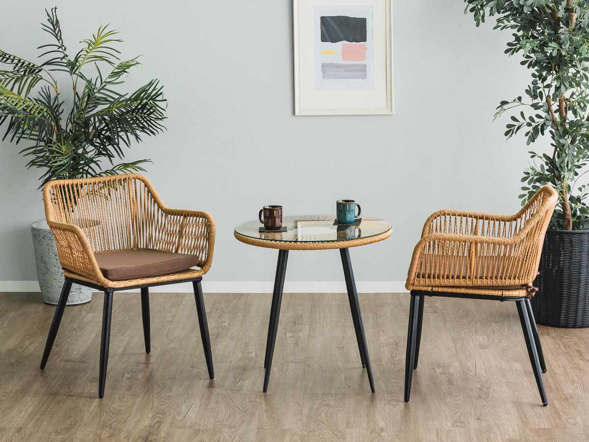 耐久性が高く、水や汚れに強いポリエチレン製の人工ラタンを使用。お手入れがしやすく、長くお使いいただけます。また、天然ラタンのようなささくれやめくれが出にくいため、小さなお子様のいるご家庭でも安心です。