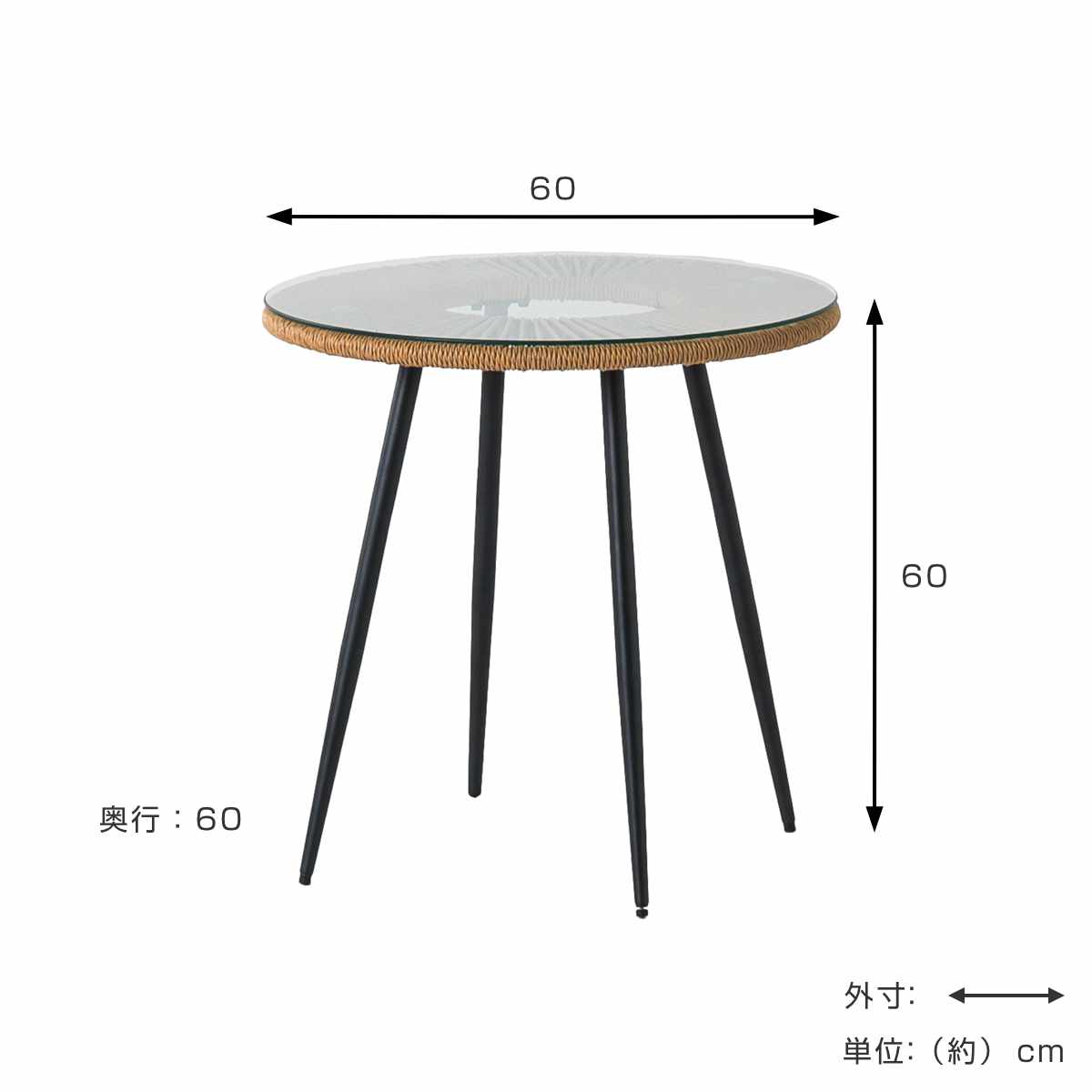 丸テーブル リゾートテーブル 円形 スチール脚 おしゃれ ナチュラル インテリア 室内 家具 アジアン家具 インテリア家具 カフェ風 アジアンテイスト リゾート風 屋内 屋外 テラス テラステーブル ウッドデッキ ベランダ ベランピング リゾート 正円 寝室 玄関 リビング table 異素材 シンプル コンパクト ワンルーム 一人暮らし 新生活 大人 女子 可愛い かわいい 強化ガラス ブラックスチール 脚 黒 高さ60 LH19380