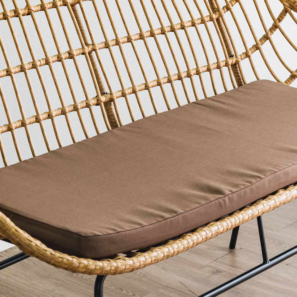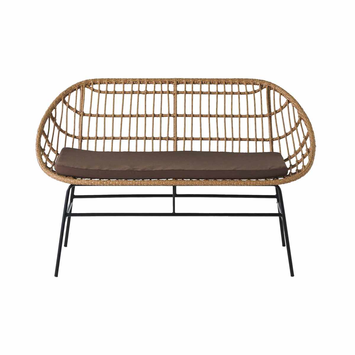 ●人工ラタンとブラックスチールを組み合わせた2人掛けチェアです。