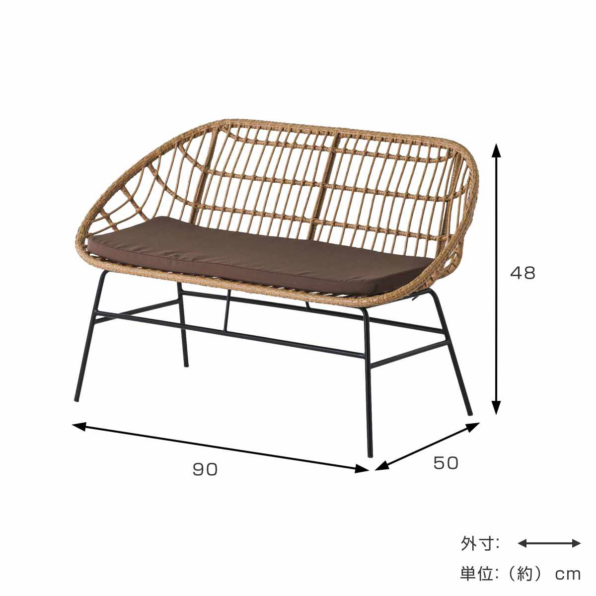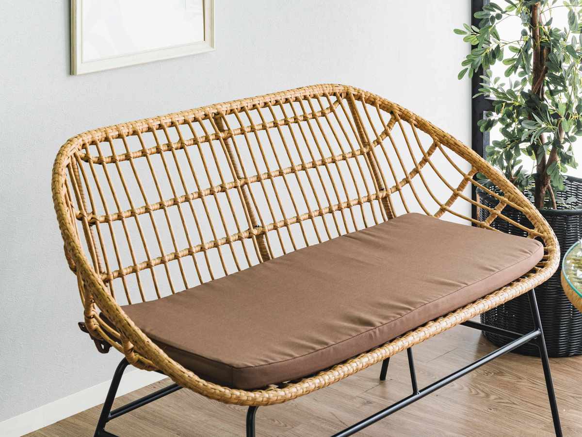 ベンチソファ 2人掛け ラタン調 マーレ ( ベンチ 2人掛けソファ チェア 椅子 クッション付き ソファ 籐 人工ラタン 軽量 )
