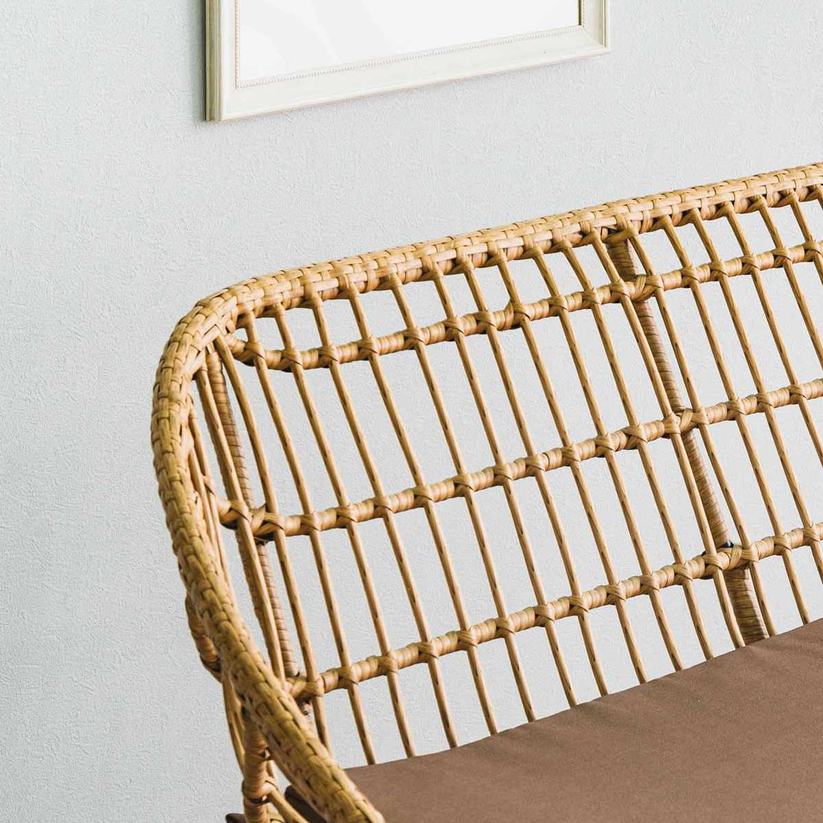 耐久性が高く、水や汚れに強いポリエチレン製の人工ラタンを使用。お手入れがしやすく、長くお使いいただけます。また、天然ラタンのようなささくれやめくれが出にくいため、小さなお子様のいるご家庭でも安心です。