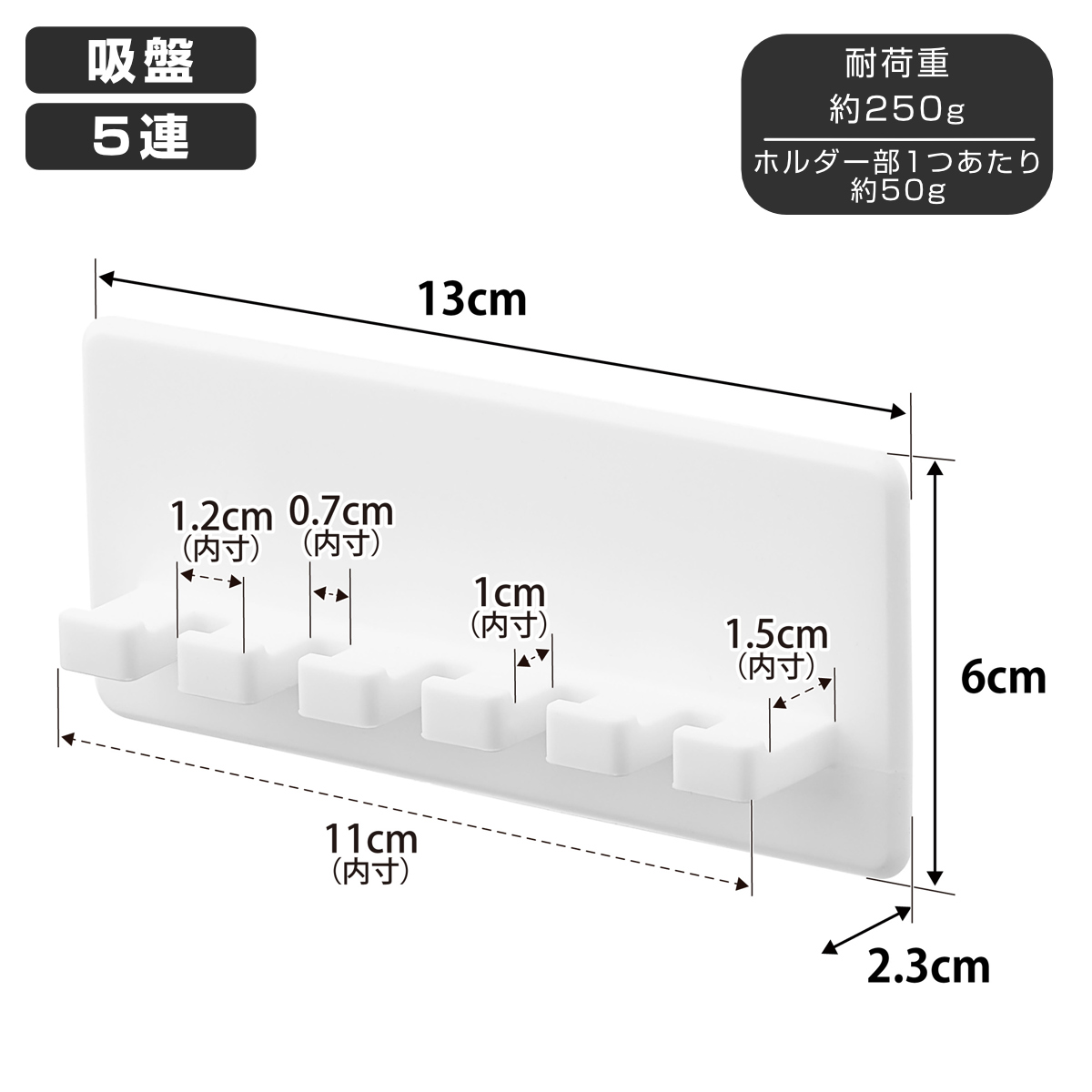 | 耐荷重 | 250g (ホルダー部1つあたり:50g)(静止荷重) |