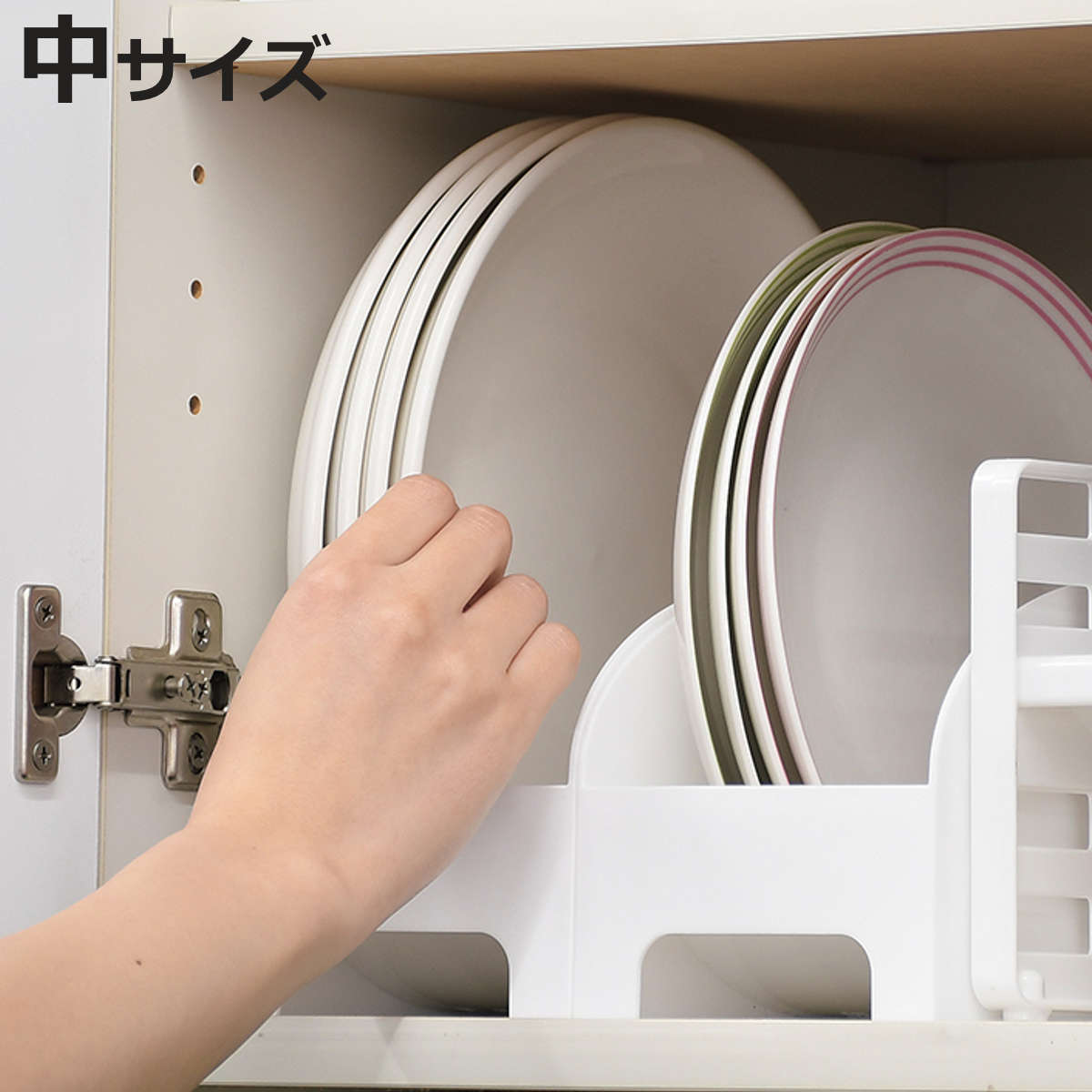 食器棚のスペースを有効活用できるプレートスタンド中プレートを立てて収納できるプレートスタンドです。棚やキッチン周りがすっきり整い、スペースを有効活用できます。