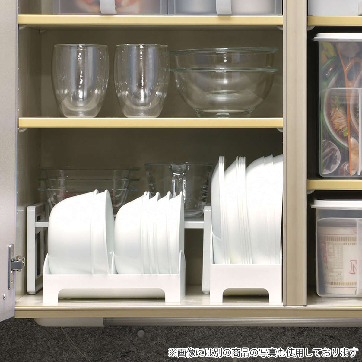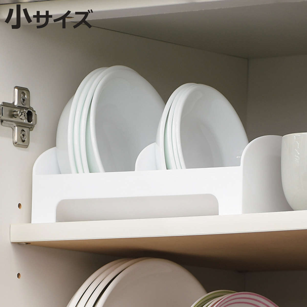 ●プレートを立てて収納することで、棚の中やキッチン周りのスペースを有効活用できます。