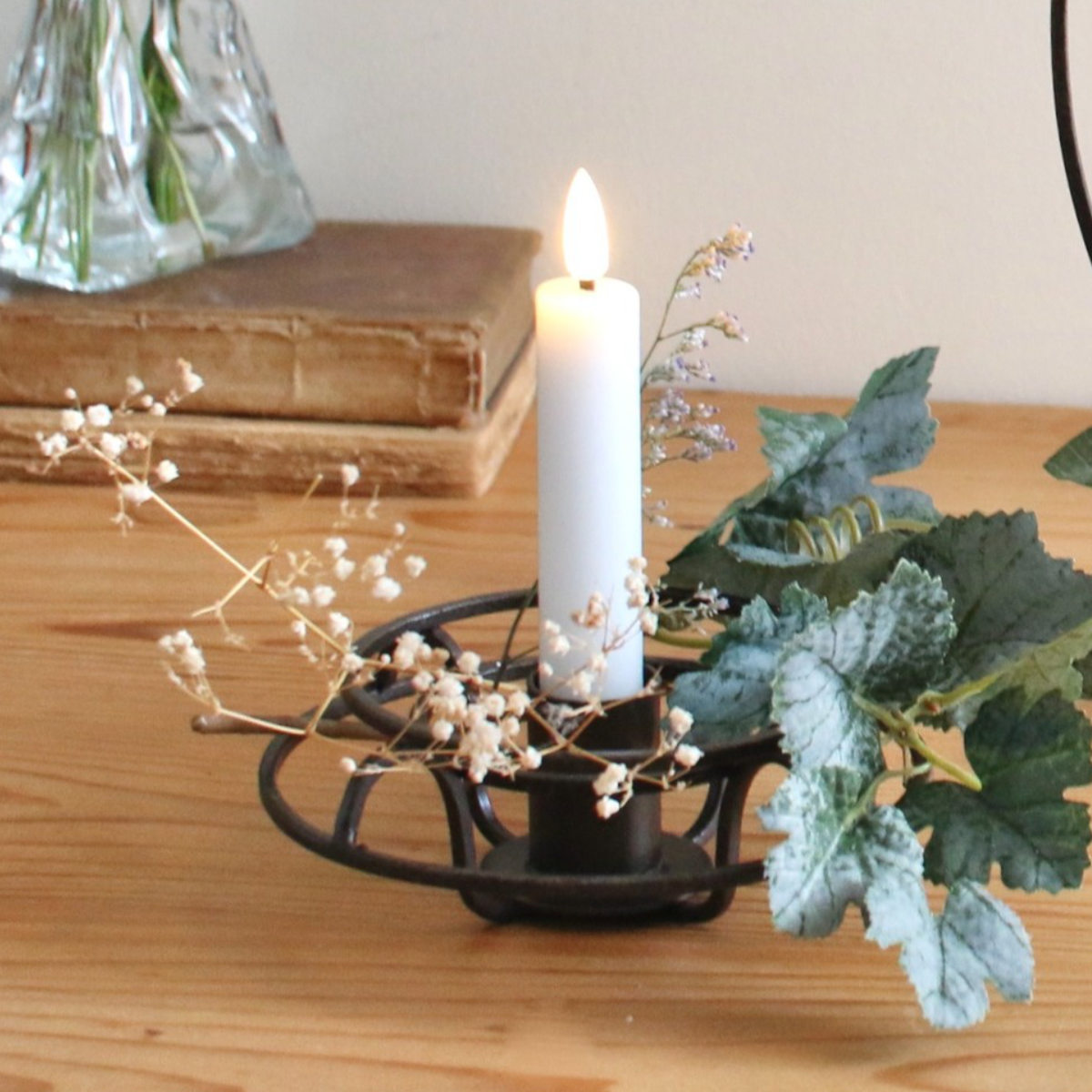 お好きにアレンジ可能周囲にアレンジメントを施せるような余白がございます。キャンドルだけでなく、ドライフラワーやオブジェとの組み合わせなどアイディアが広がります。