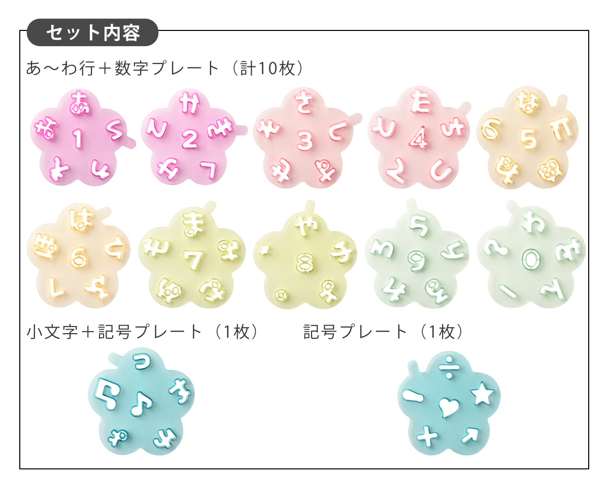 | サイズ | 約 幅9.5×奥行9×高さ0.8(cm)(見出し含まず) 約 幅9.5×奥行9×高さ0.6(cm)(ハート行のみ) |