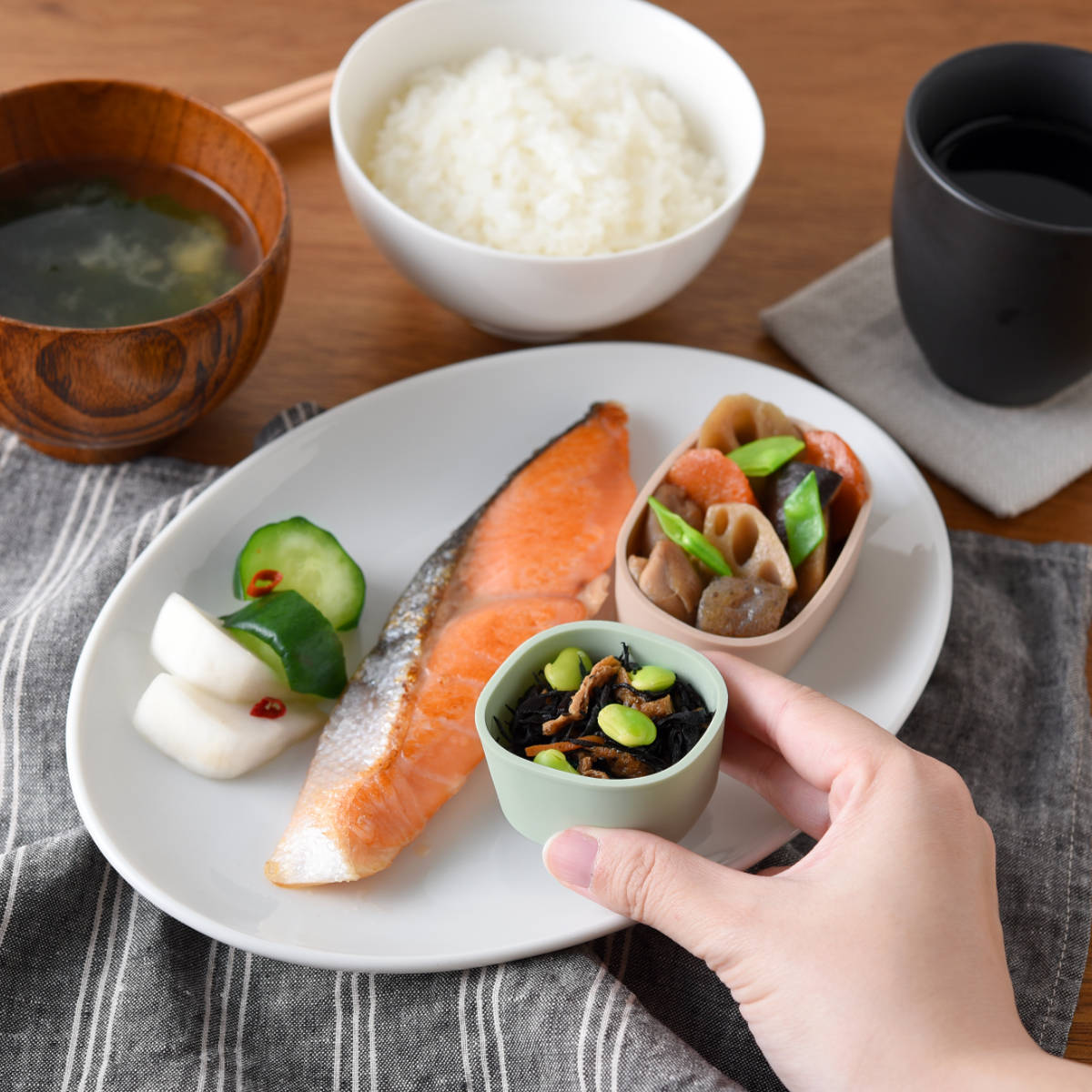 | 内容量 | ノーマル 容器本体・蓋:各1個 カップ:6個(3色×各2個) オーバル 容器本体・蓋:各1個 カップ:4個(2色×各2個) |