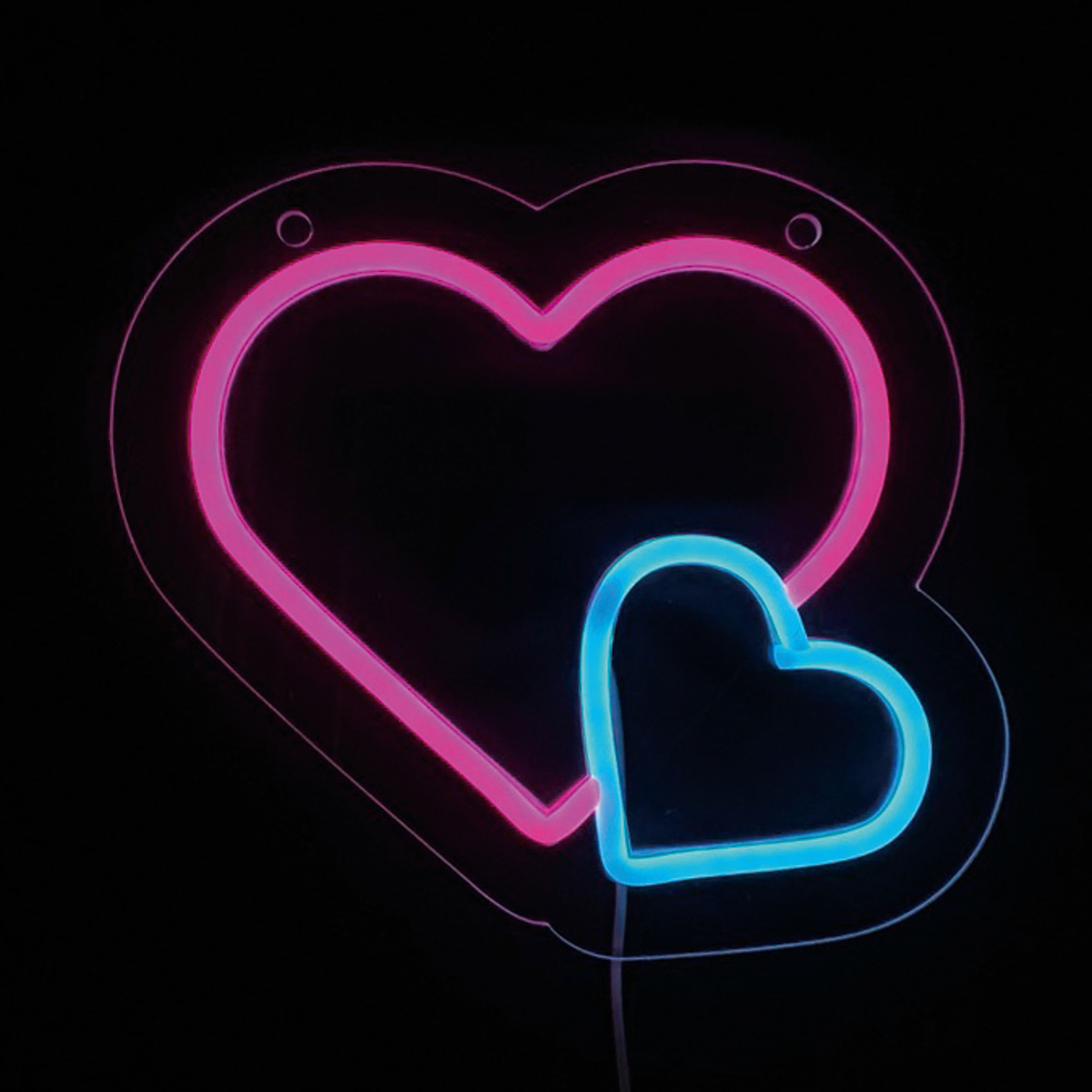 サインライト 〜Hearts〜ネオニーサインライトの「ハート」デザインです。ビビッドなピンクとブルーの発色がインテリアを可愛らしく彩ります。