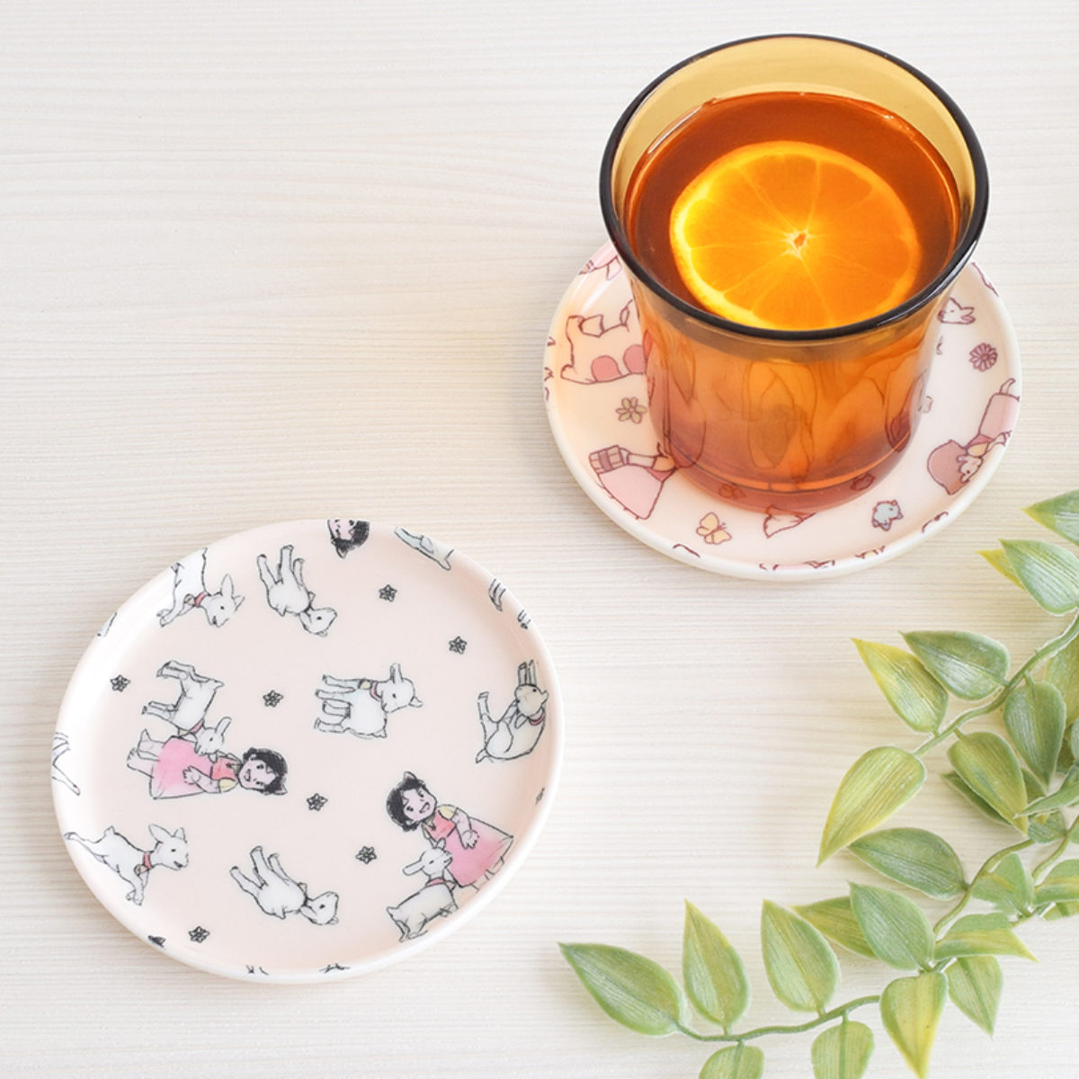アルプスの少女ハイジのデザインが可愛いコースター可愛いハイジのデザインが目を惹く布張りコースター。プリント布地を使用し、表面はコーティング加工で水洗いも可能です。コップやマグカップの下に置けば、食卓に遊び心を添えられます。自分用にはもちろん、プレゼントにもおすすめです。