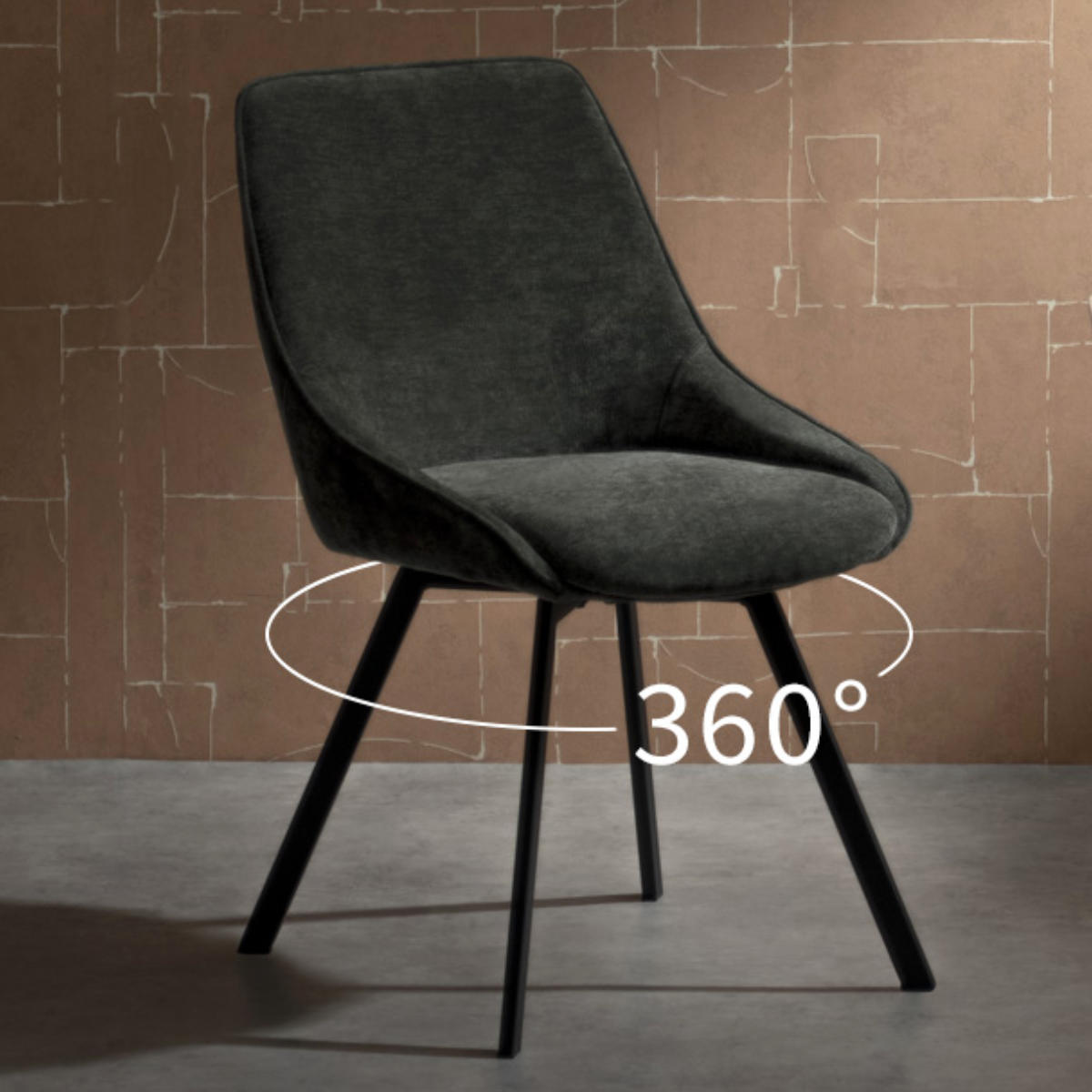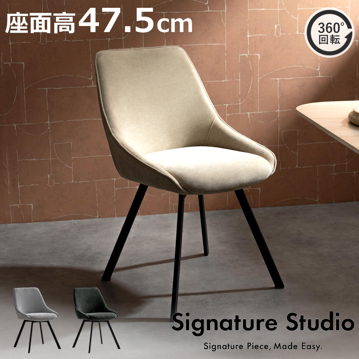 ●滑らかな曲線と上品なファブリックが魅力の回転式ダイニングチェアです。