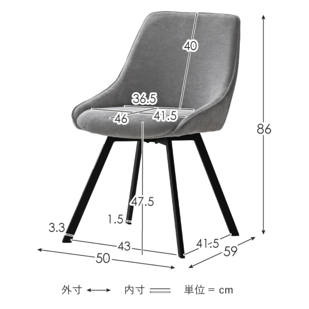 座面高:約 47.5(cm)