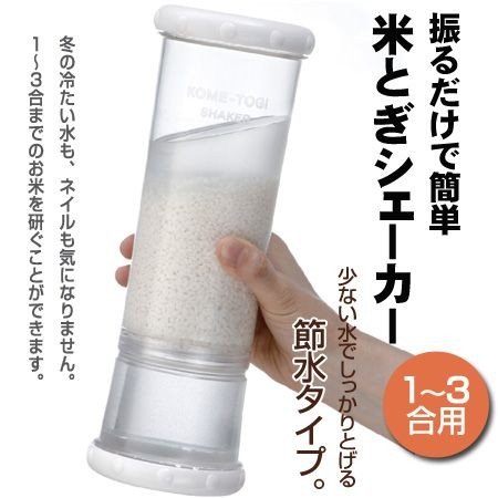 米とぎ 米とぎシェーカー ( 便利グッズ 米研ぎ ネイル 米とぎ器 お米とぎ お米 ホワイト 水切り 日本製 節水 )