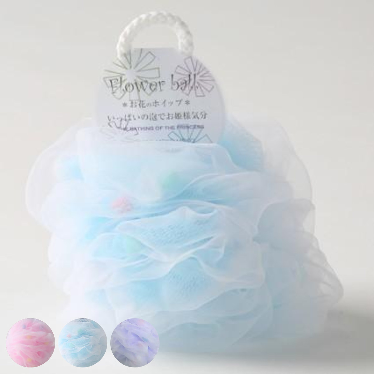 泡立てネット フラワーボール ピンク/ブルー/バイオレット ( ボディスポンジ ボディブラシ ボール型 ソフト 柔らかい )