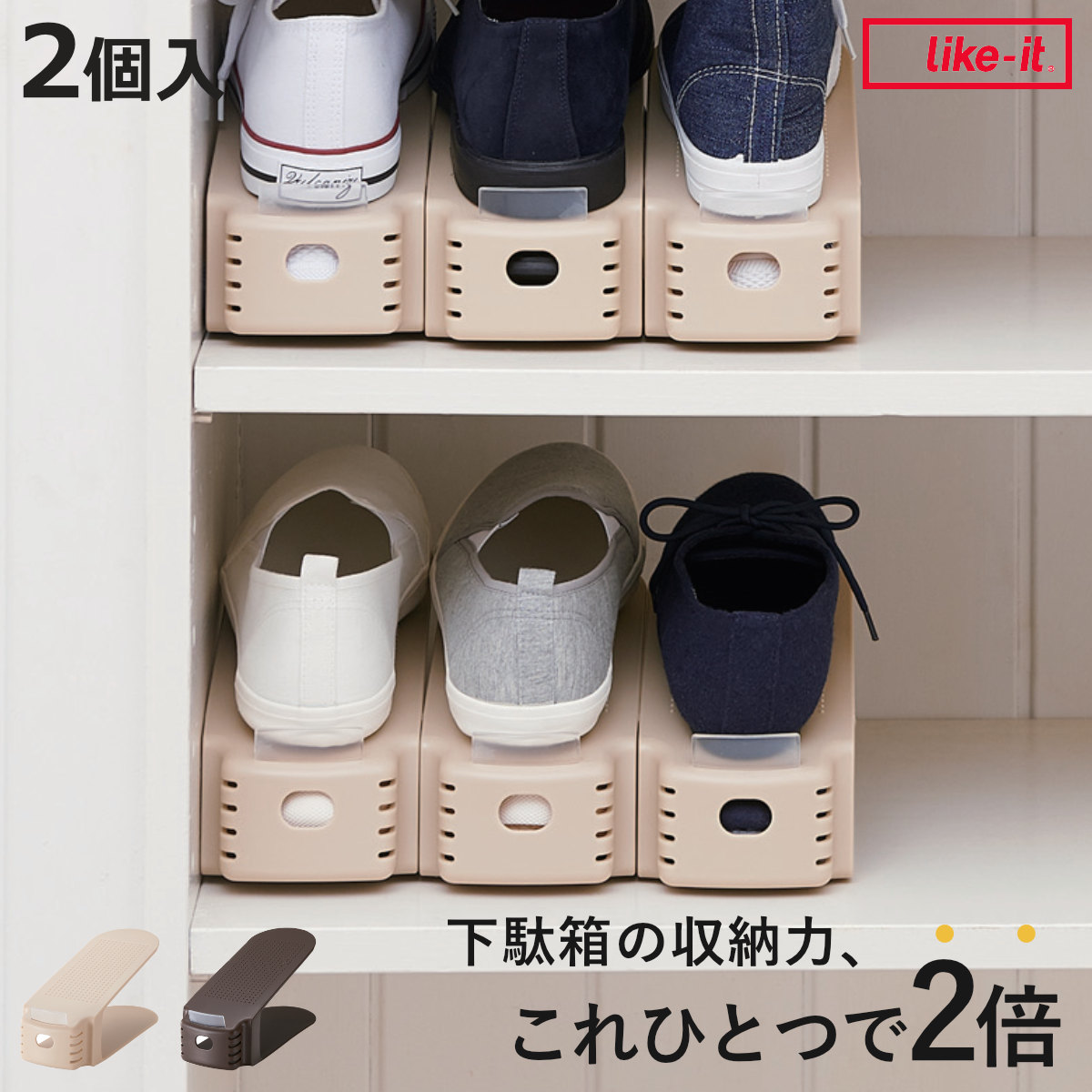 靴 収納 2個入り くつホルダー ( 靴ホルダー 幅10cm ワイドタイプ 取っ手穴付き 靴収納 シューズ くつ ホルダー 省スペース 互い違い 靴箱 )