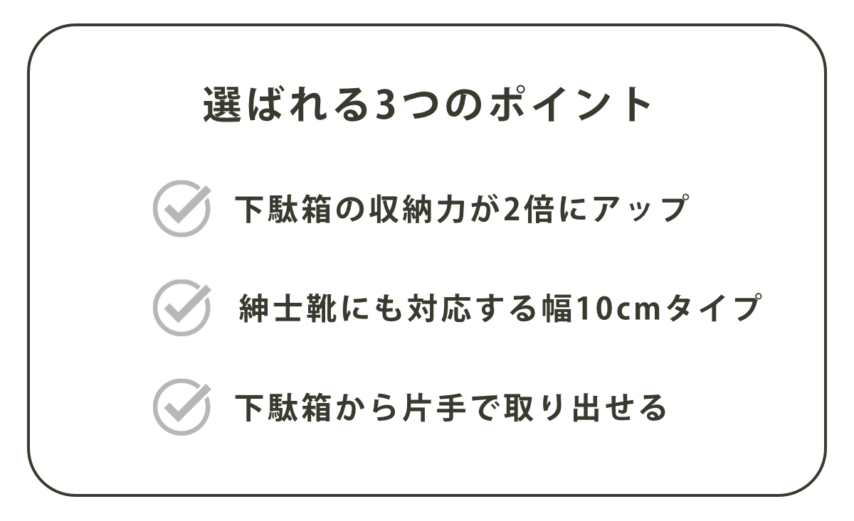 ※靴のデザインやサイズ、下駄箱によっては、ご使用いただけない場合があります