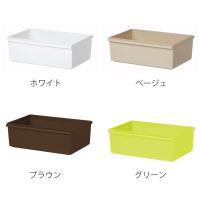 | レールと組み合わせて引き出しに 別売りのレールを取り付けると、引き出しとしてお使いいただけます。奥まで出し入れしやすくなって使い勝手もアップします。 | フタをすればスタッキング可能 フタ(別売り)をすると同シリーズでスタッキングできます。棚が無い場合でも収納場所を作れます。 【2個積み重ねた高さ】 ・浅型同士:約26cm ・浅型と深型:約39cm |