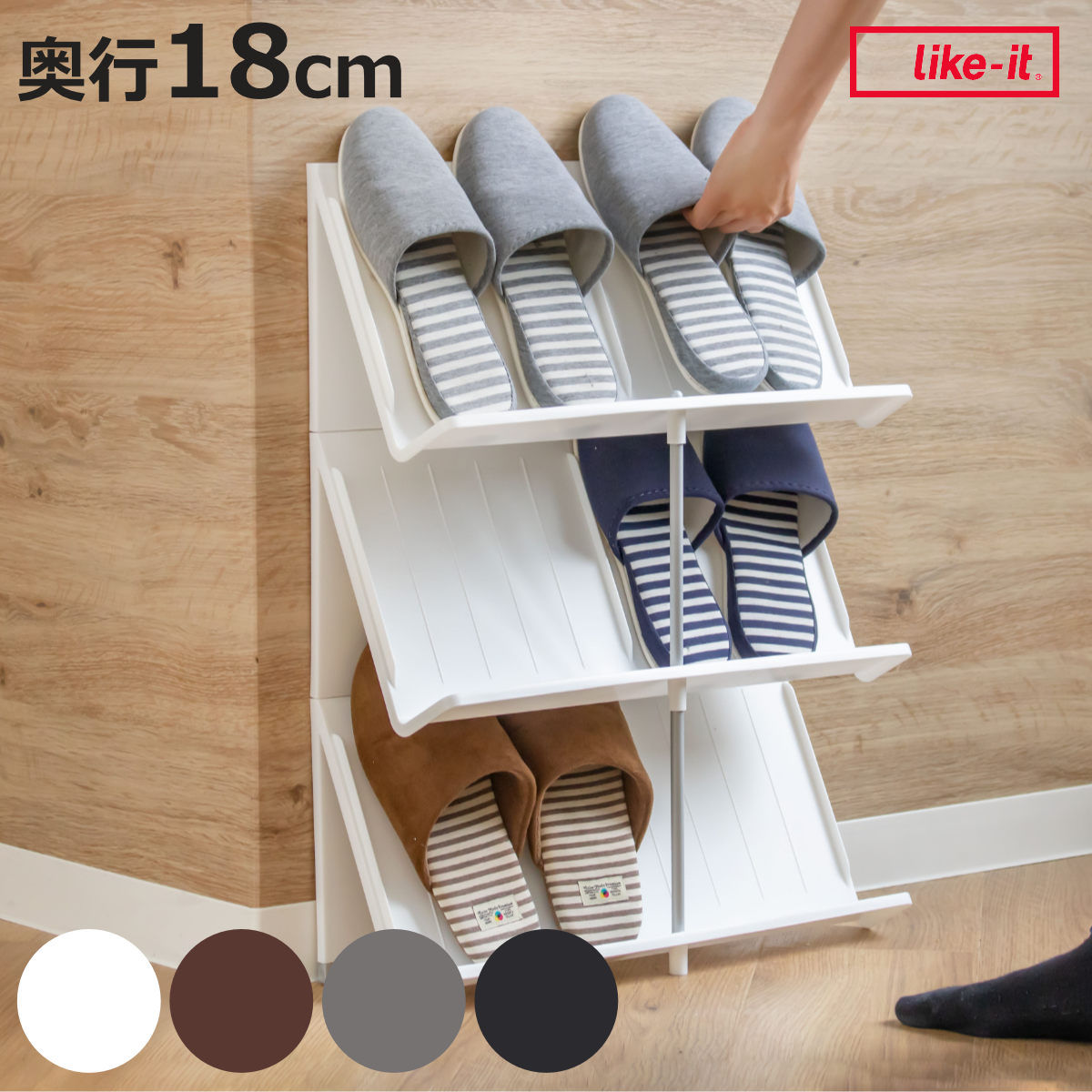 奥行たった18cmで叶う、下駄箱の省スペース収納玄関に靴が散らかるのは嫌だけど、毎回下駄箱に収納するのも面倒。そんな悩みを解決するのがこちらのシューズラックです。奥行が