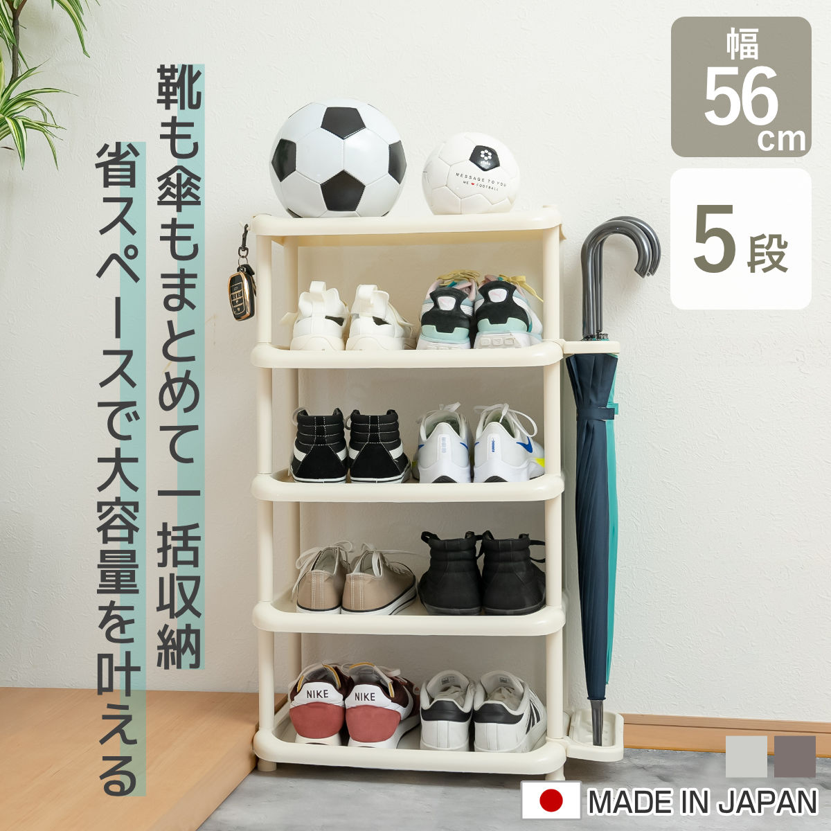シューズラック ワイド 5段 シューズストレージ 傘立て付き 組立品 ( シューズスタンド 靴収納 下駄箱 靴 収納 ラック 傘立て スリム 簡単 組み立て 幅広 )