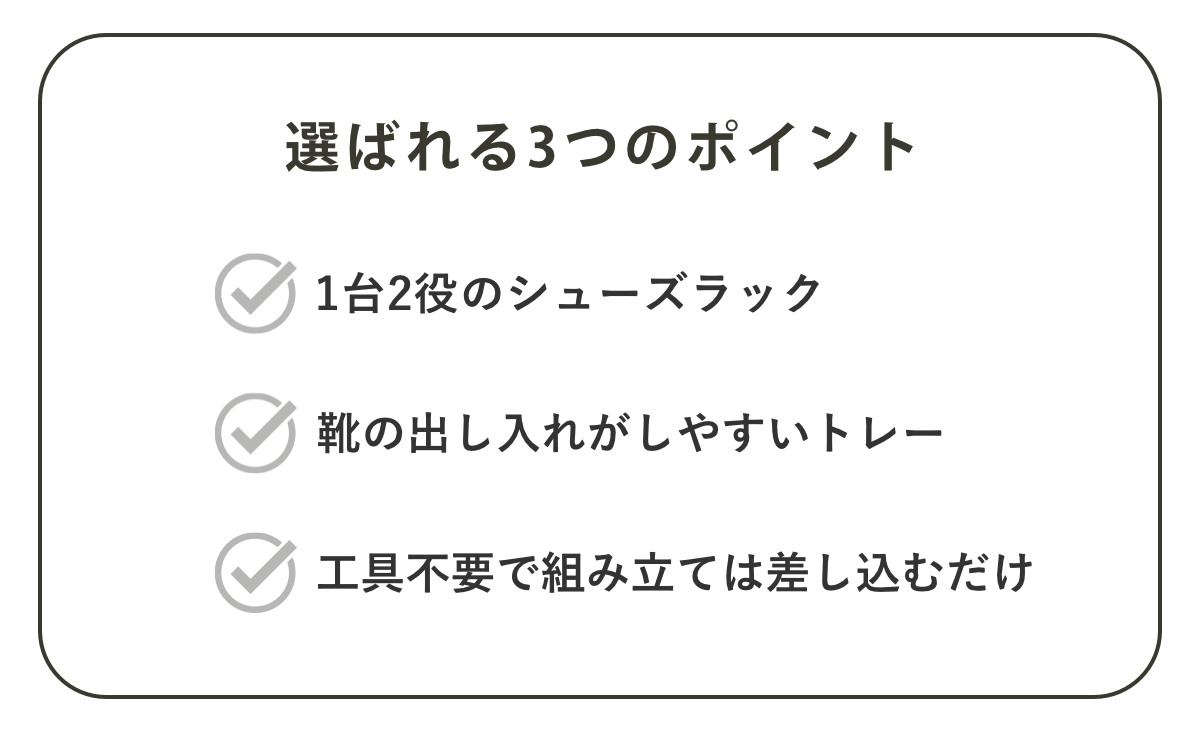 オープンタイプなので、風通しが良く、カビやニオイの原因となる湿気が留まりにくくなっています。蒸れやすい脱ぎたての靴も気にせず収納でき、お気に入りの靴もキレイに保管できます。