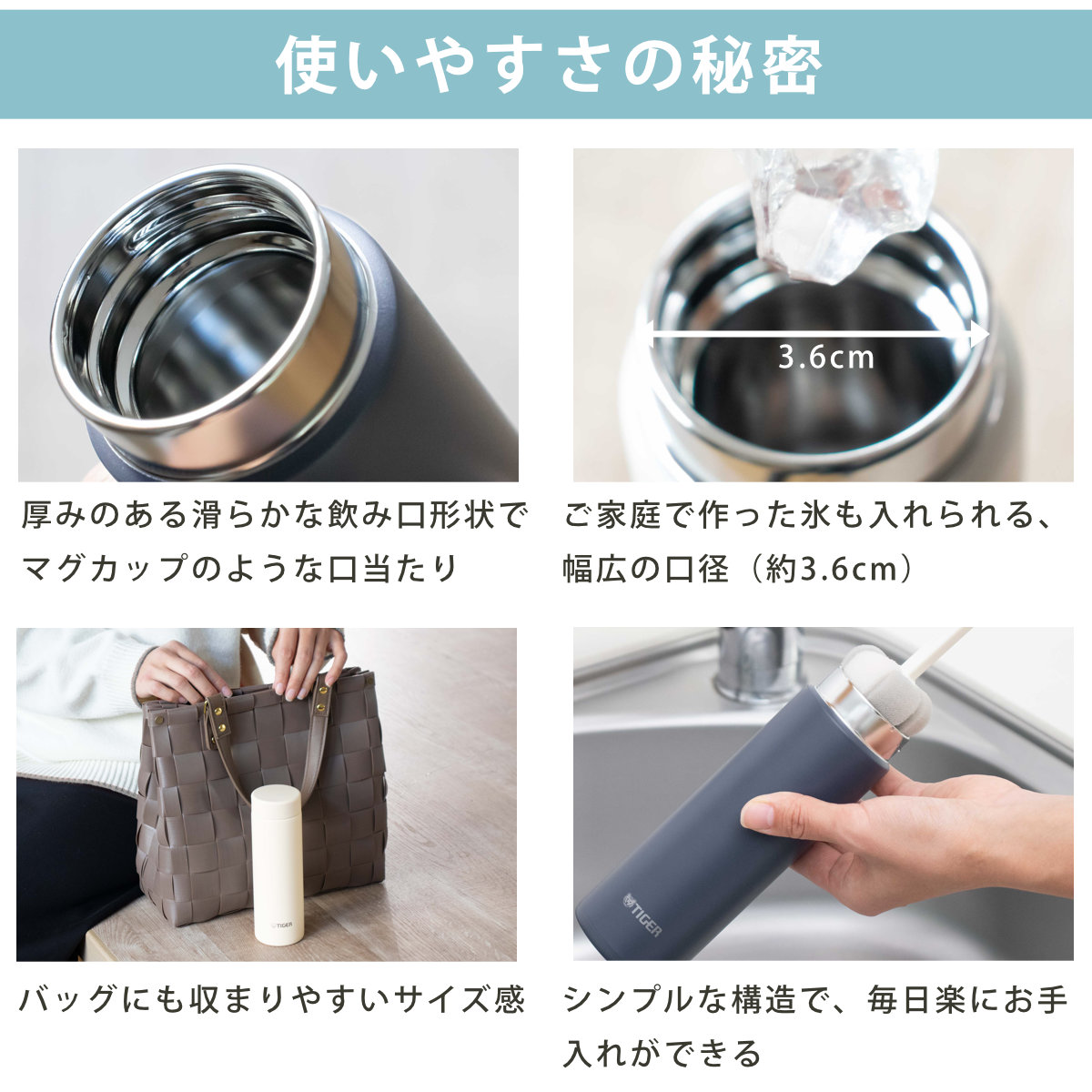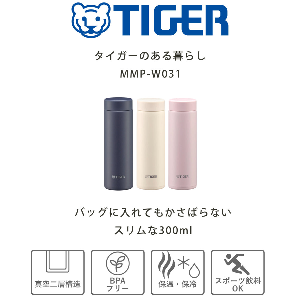 タイガー 水筒 300ml 真空断熱ボトル スリムマグ MMP-W031 ( タイガー魔法瓶 保温 保冷 パッキン一体 食洗機対応 マグボトル 直飲み おしゃれ )