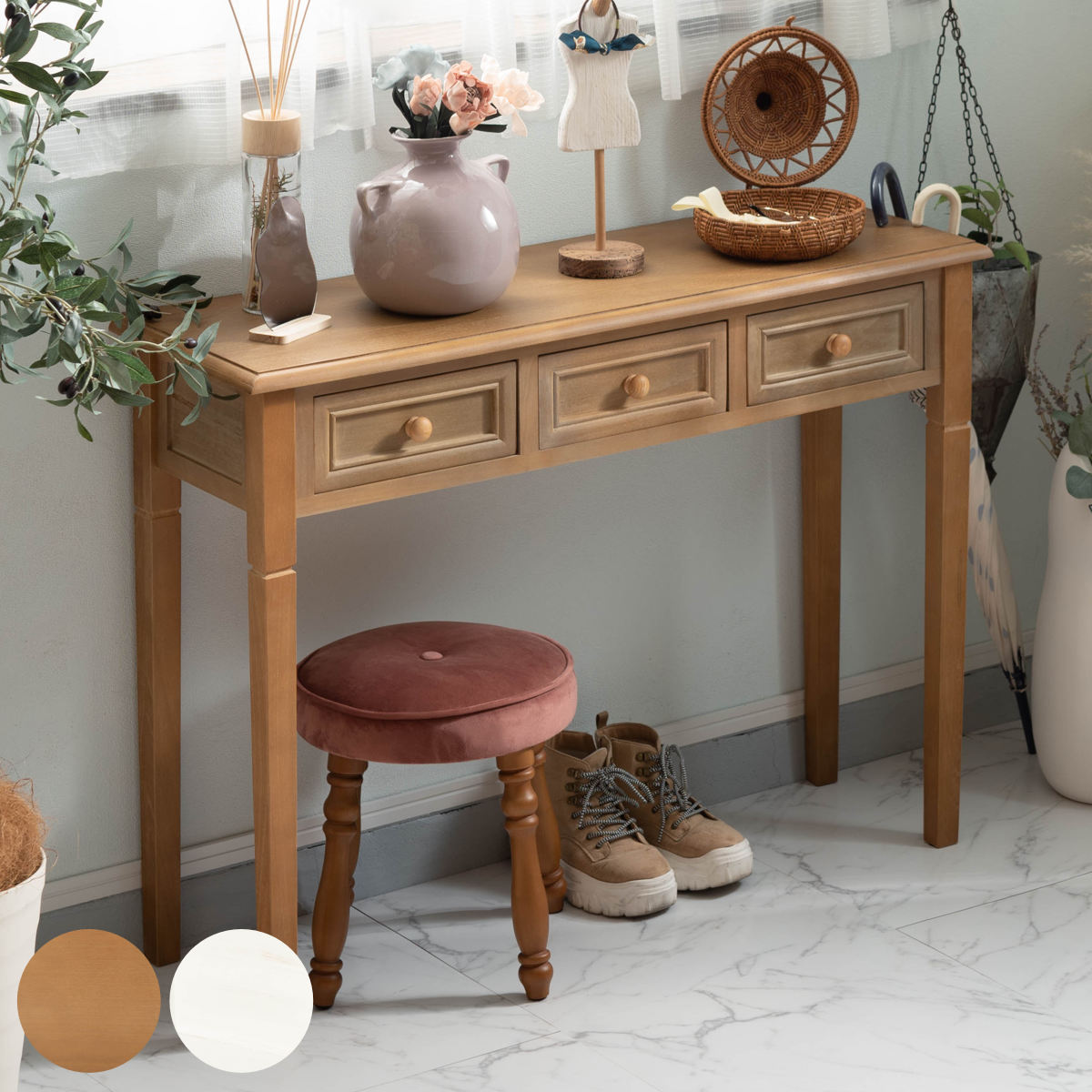 玄関 リビング ヴィンテージ調 ナチュラル カントリー調 木製 テレビ台 玄関周り エントランス 寝室 メイク台 ドレッサー 小物整理 シンプル シャービー フレンチ ヨーロピアン ヨーロッパ 可愛い かわいい 在宅ワーク 簡易机 ベッドルーム 約 幅100 奥行 33 高さ 74 cm センチ デスク パソコン ディスプレイ棚 Aube オーブ COD 桐 LH9195