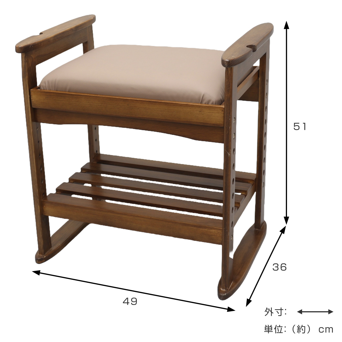 | サイズ | 約 幅49×奥行36×高さ51(cm) 座面高:6段階調節(26〜42cm) |