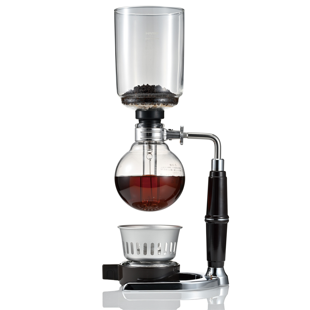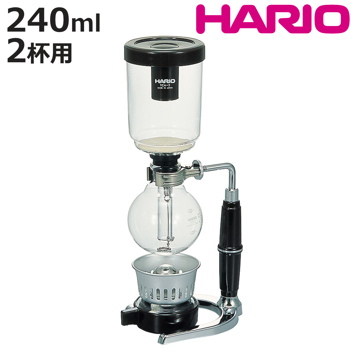 ご家庭でもプロの味を楽しめるコーヒーサイフォン 2杯用業務用のガスバーナーにもアルコールランプにも対応した、ハリオのコーヒーサイフォンです。真空と気圧差を利用するサイフォン方式により、雑味を抑えながら豆本来の風味を引き出し、家庭でもプロのような抽出が楽しめます。実用容量は約240mlで2杯分のコーヒーを淹れられます。