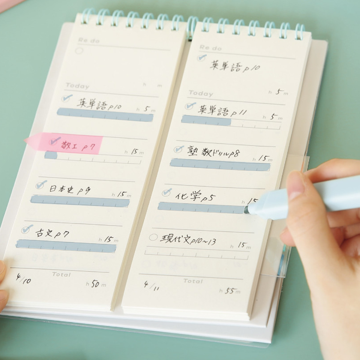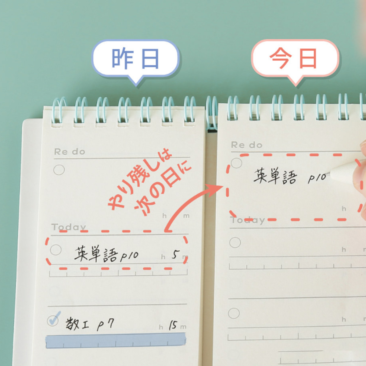 前日の振り返りがしやすい2連のメモが100日分あるので、勉強の記録もしっかりできます。