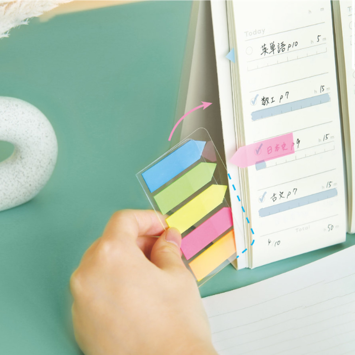 わからない問題があれば付属の付箋で目印を付けられます。付箋は台紙に挟んで保管できます。
