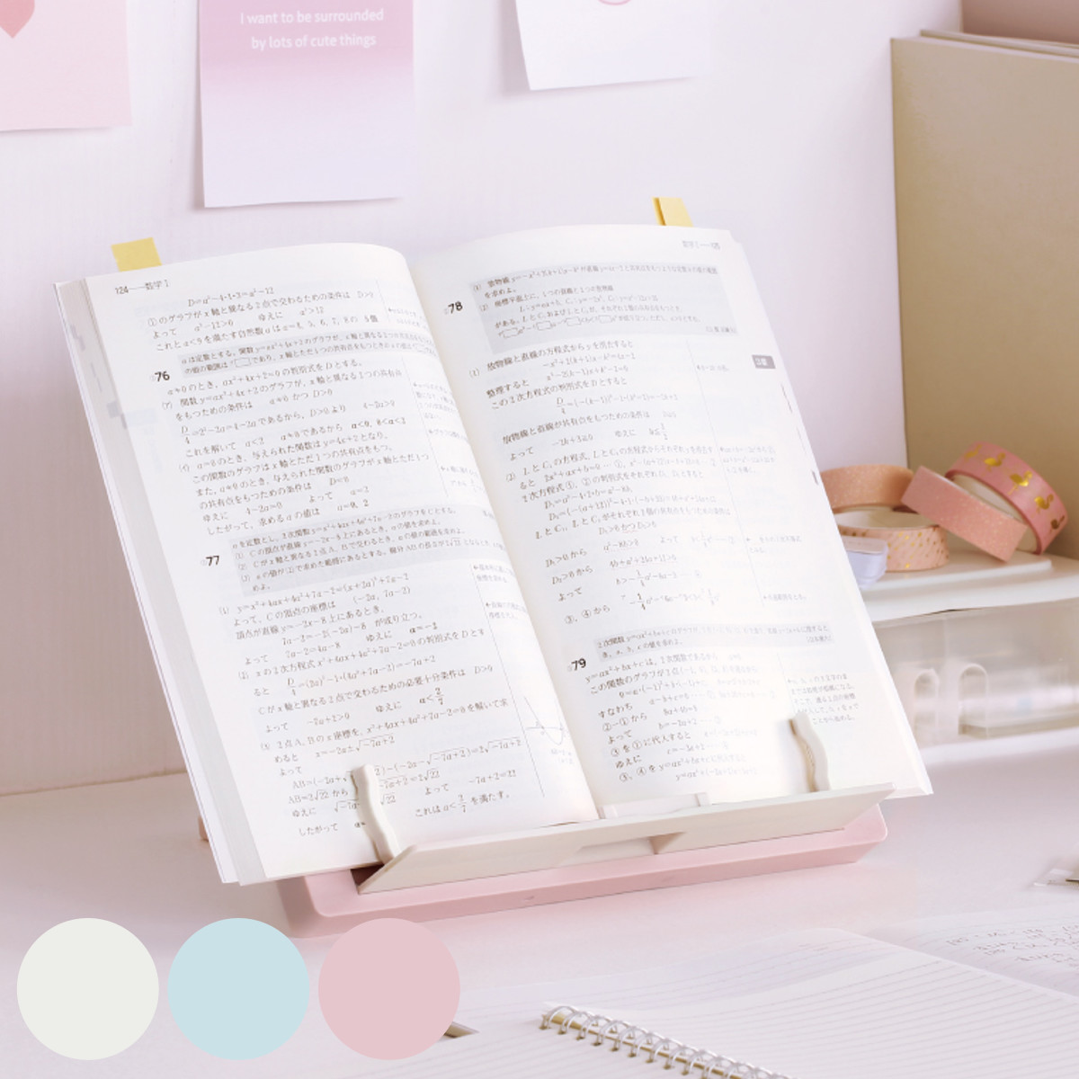 ページを開いたまま固定できるストッパーが付いているので、本を抑えずに両手が使えて便利です。