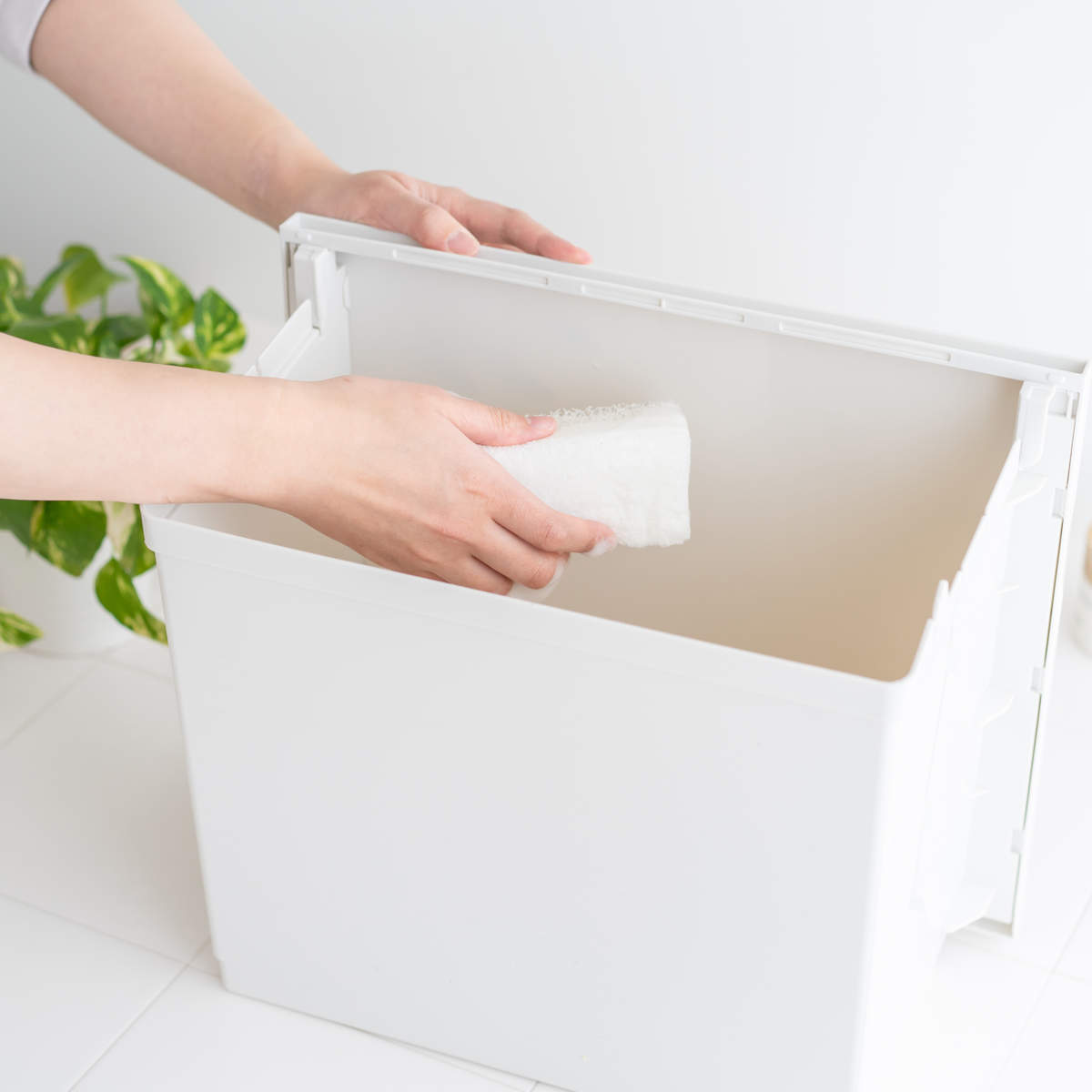 お手入れしやすく、いつも清潔水に濡れたり汚れたりしてもサッと拭き取れ、上段・下段ともに丸洗いが可能です。手軽に洗えるので、ゴミ箱内をいつでも清潔に保てます。