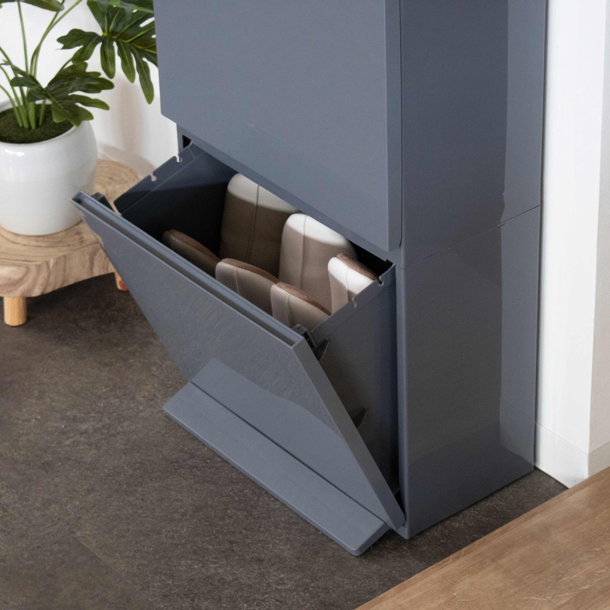 収納ボックスとしても使える多用途設計見た目の良さを活かして、収納ボックスとしての使用もおすすめ。玄関のスリッパ収納や掃除用品、お子さまのおもちゃ、日用品のストックなど幅広く活躍します。